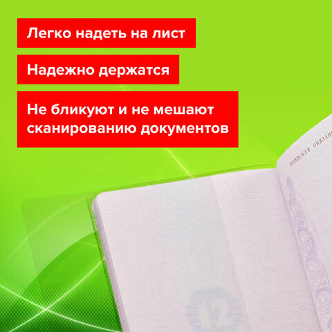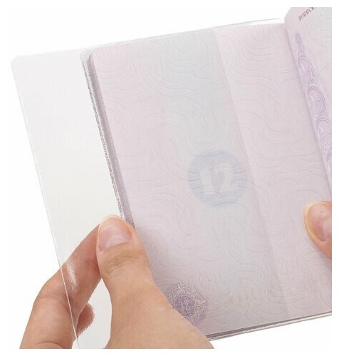 Модель выполнена из качественного прозрачного ПВХ. Размер обложки - 127х88 мм. Обложка легко крепится на каждый лист документа, при этом надежно на нем фиксируется.