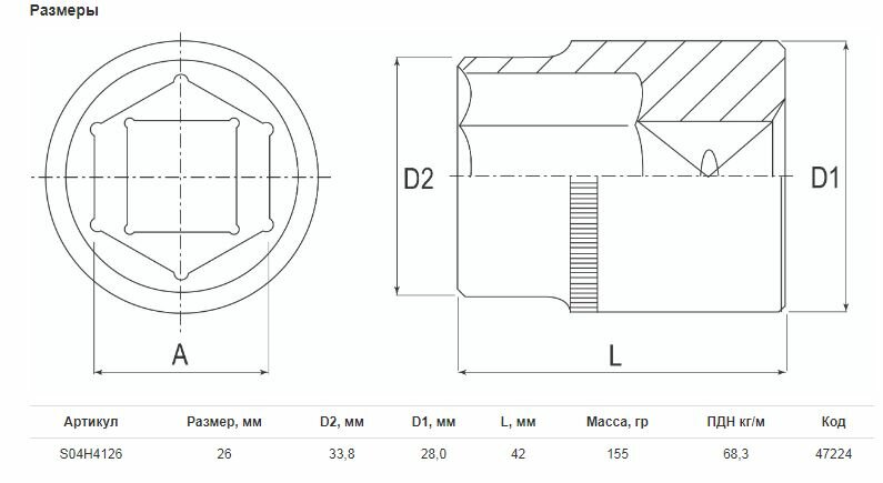 - Размер головки: 26 мм