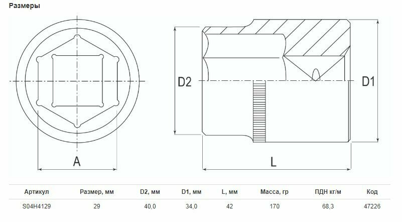 Торцевая головка выполнена из хромованадиевой стали, имеет накатку и полуматовое хромоникелевое покрытие. Изделие изготовлено по стандарту DIN 3124, соответствует требованиям ГОСТа 25604-83.