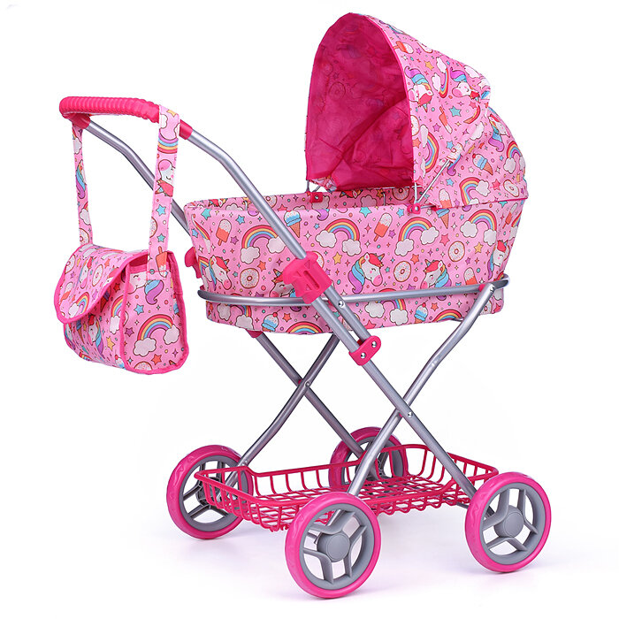 Коляска для куклы Meloboo - настоящий подарок для маленькой девочки. Удобная конструкция лишена острых углов для безопасности малышки, а ее оптимальные размеры позволят с легкостью брать с собой на улицу коляску для прогулки вместе со своей куклой. Ее можно уложить в уютную люльку, а капризы погоды не страшны благодаря специальному выдвигающемуся козырьку, который пригодится для защиты от осадков.