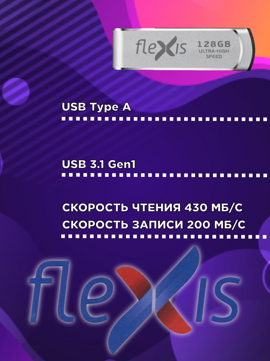 Флешка 128Gb Flexis USB 3.0 серебристый
