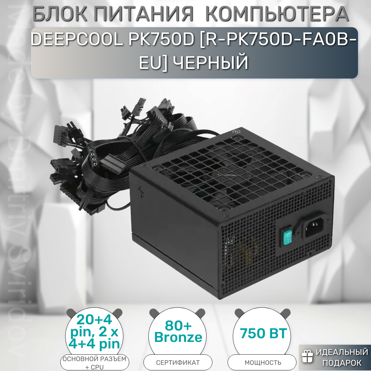 | Прочие особенности и свойства | мощность 750 Вт, ATX12V 2.4, активный PFC, вентилятор 120 мм, cертификат 80 PLUS Bronze |
