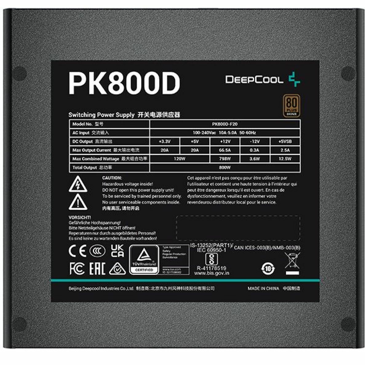 | Прочие особенности и свойства | Блоки питания DeepCool серии PK-D обеспечивают надежность питания и низкий уровень шума во в течении всего периода эксплуатации, а энергоэффективность соответствует требованиям сертификата 80 PLUS Bronze. |
