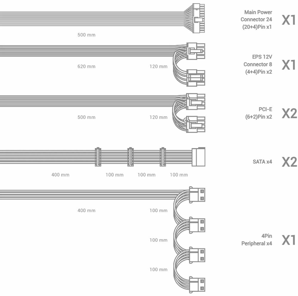 | Длина 6+2 pin PCI-E | 500 мм |