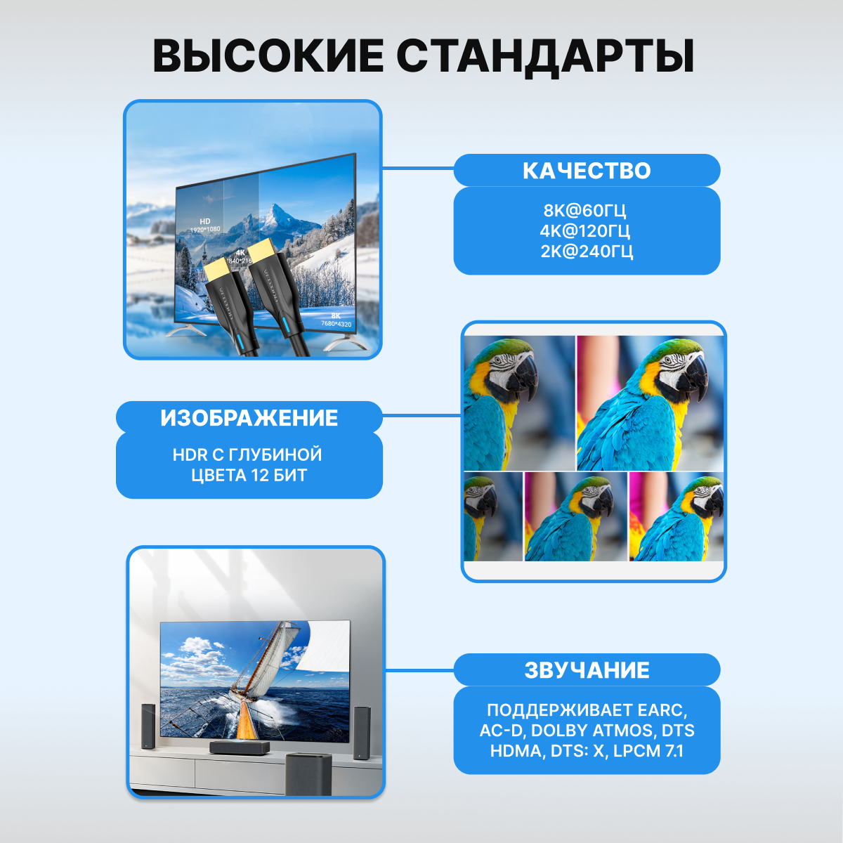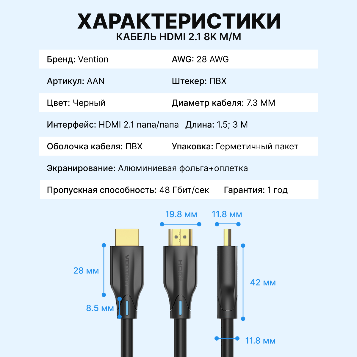 Отличный недорогой кабель с реальной поддержкой HDMI ver 2.1. Выбирал себе недорогой кабель но с поддержкой 4к 120 Гц и HDR. Смотрел в сторону Ugreen HD 140 на который достаточно много положительных отзывов, но он в 2 раза дороже. Платить за оплётку такую цену не вижу смысла. На данный кабель в РБ сегменте отзывов не было. Руководитствовался отзывами на других маркетплейсах. Часть утверждали что кабель соответствует ver 2.1, часть отзывов говорили об обратном. По итогу все ок, все работает. Возможно покупатели не знают версию hdmi своих устройств. На карте Radeon rx6700 xt и ТВ Sony x95j все завелось без проблем. Товар однозначно рекомендую.