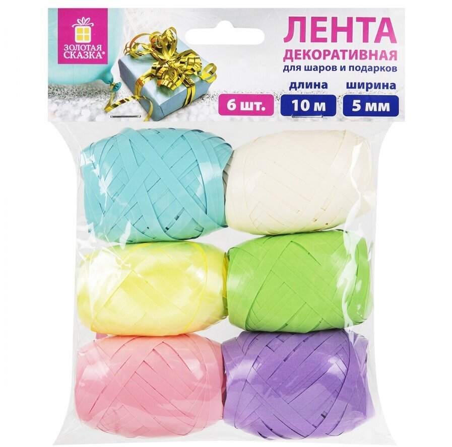 набор лент п/п ЗОЛОТАЯ СКАЗКА глянец 6шт 5мм 10м микс (591830)