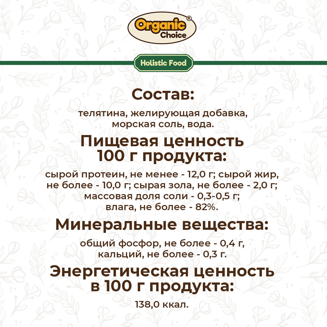 - Состав: телятина, желирующая добавка, морская соль, вода.