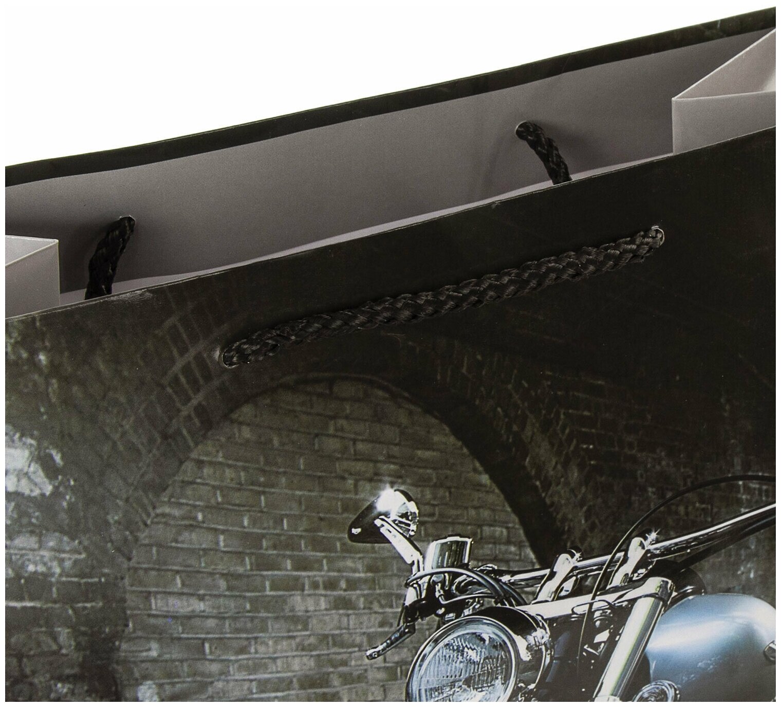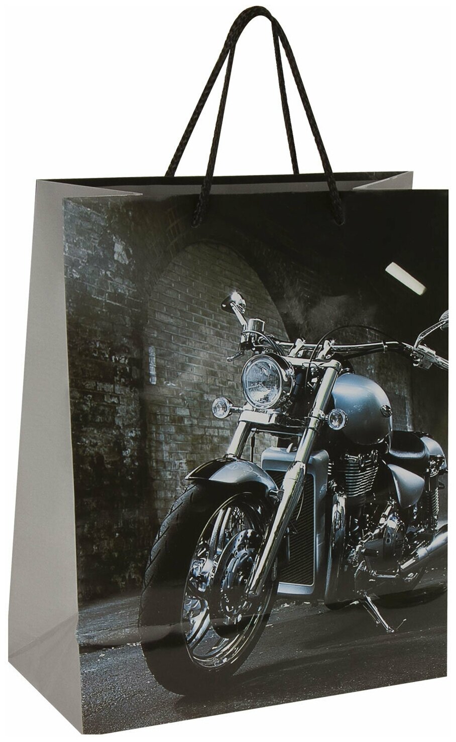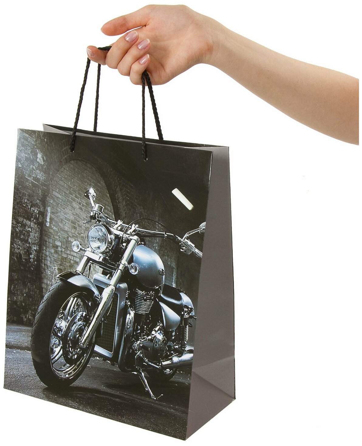Пакет подарочный 26x12,7x32,4 см, ЗОЛОТАЯ СКАЗКА "Мотоцикл", ламинированный, . Продается набором по (12 шт.) Подарочный пакет "Мотоцикл" ЗОЛОТАЯ СКАЗКА - отличное решение для упаковки любого презента, которое позволит с легкостью и со вкусом оформить выбранный подарок. Подарочный пакет, как и все виды подарочной упаковки, способен придать особый статус подарку, также он является достаточно практичным изделием, которое может использоваться в повседневной жизни. Изготовлен из ламинированной мелованной бумаги с веревочными ручками из полипропилена. Размер 26x12,7x32,4 см. Пакет выполнен в серых тонах с изображением мотоцикла.