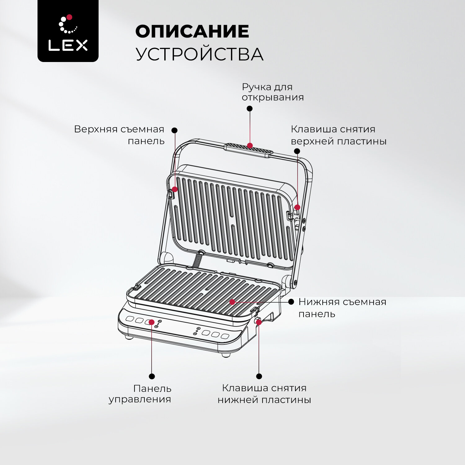 электрогриль LEX LXGR5005 2000Вт съемные панели LXGR 5005