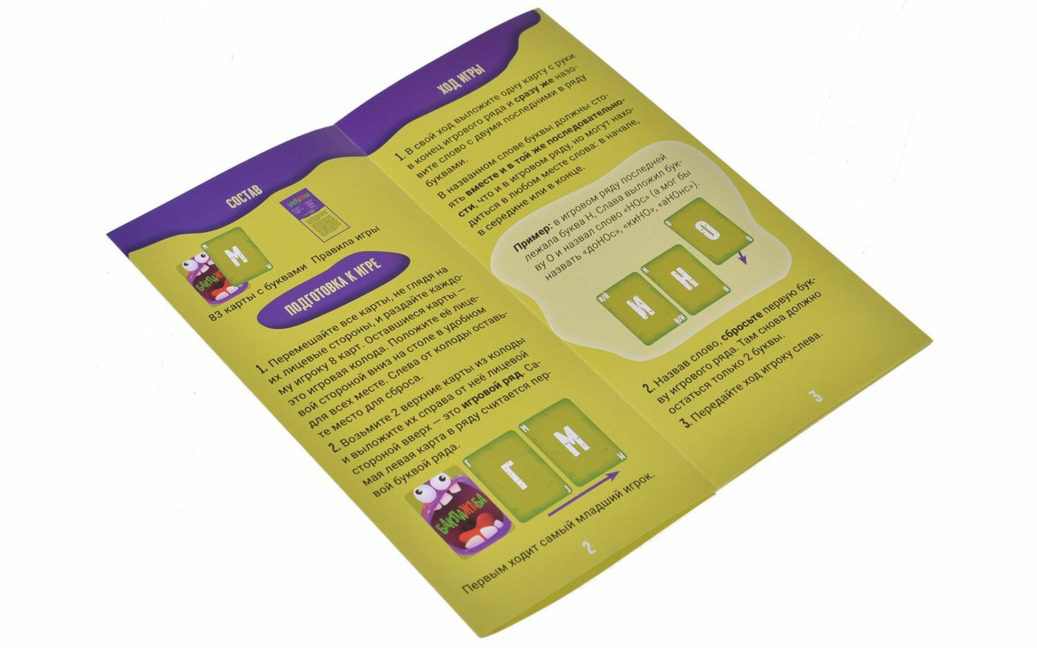 В общем, все просто. Выдаем по восемь карт другим игрокам, а из общей колоды достаем две карты с буквами и выкладываем на стол. Дальше мы уже рассказывали - кладем карточку и говорим слово с двумя буквами из ряда - они могут быть в любом месте, но главное, чтобы в правильном порядке. Естественно, как в любой игре на избавление от карт, когда на руке останется одна, нужно сказать "ква". В общем, все просто, но меж тем - придется немного подумать.