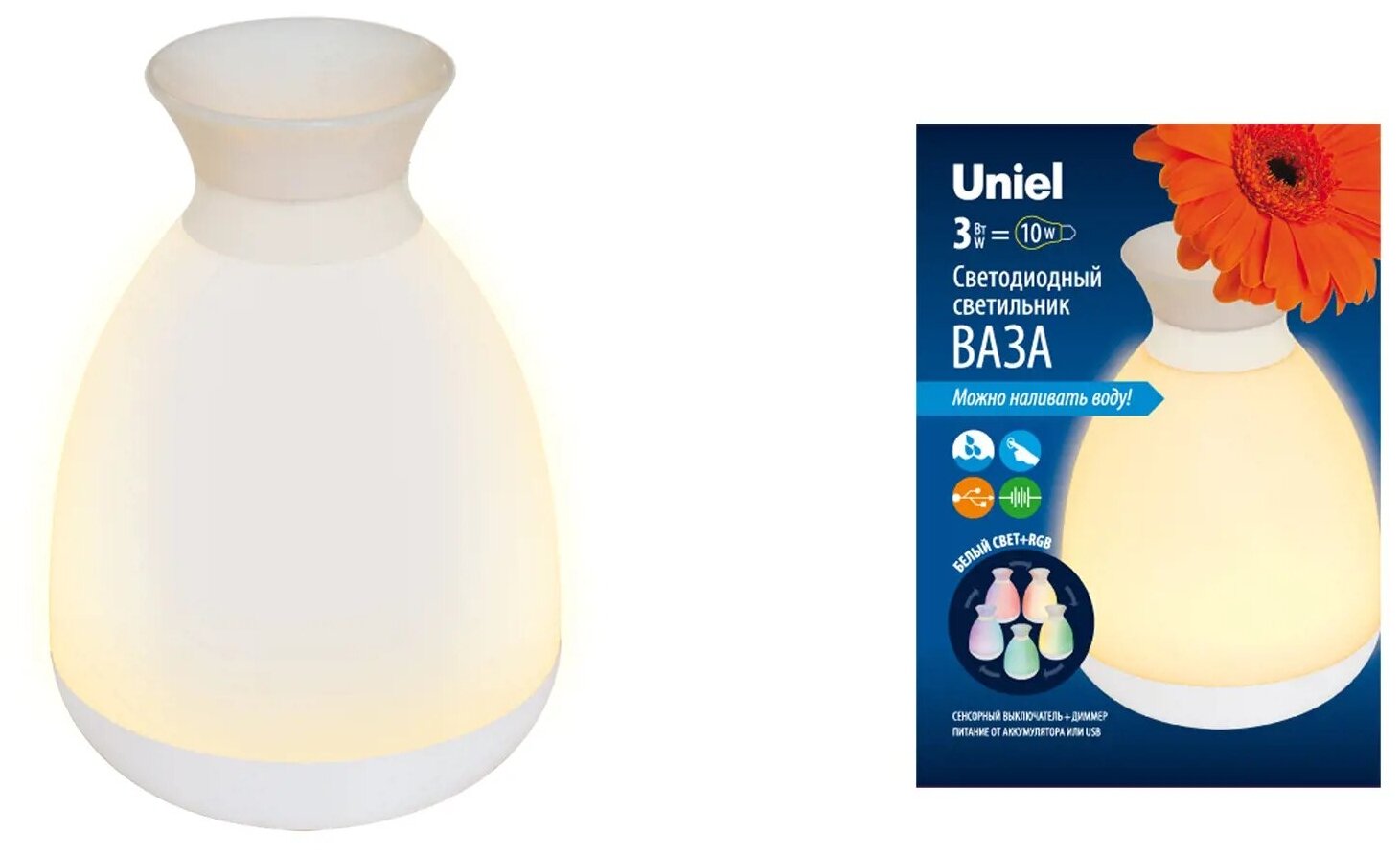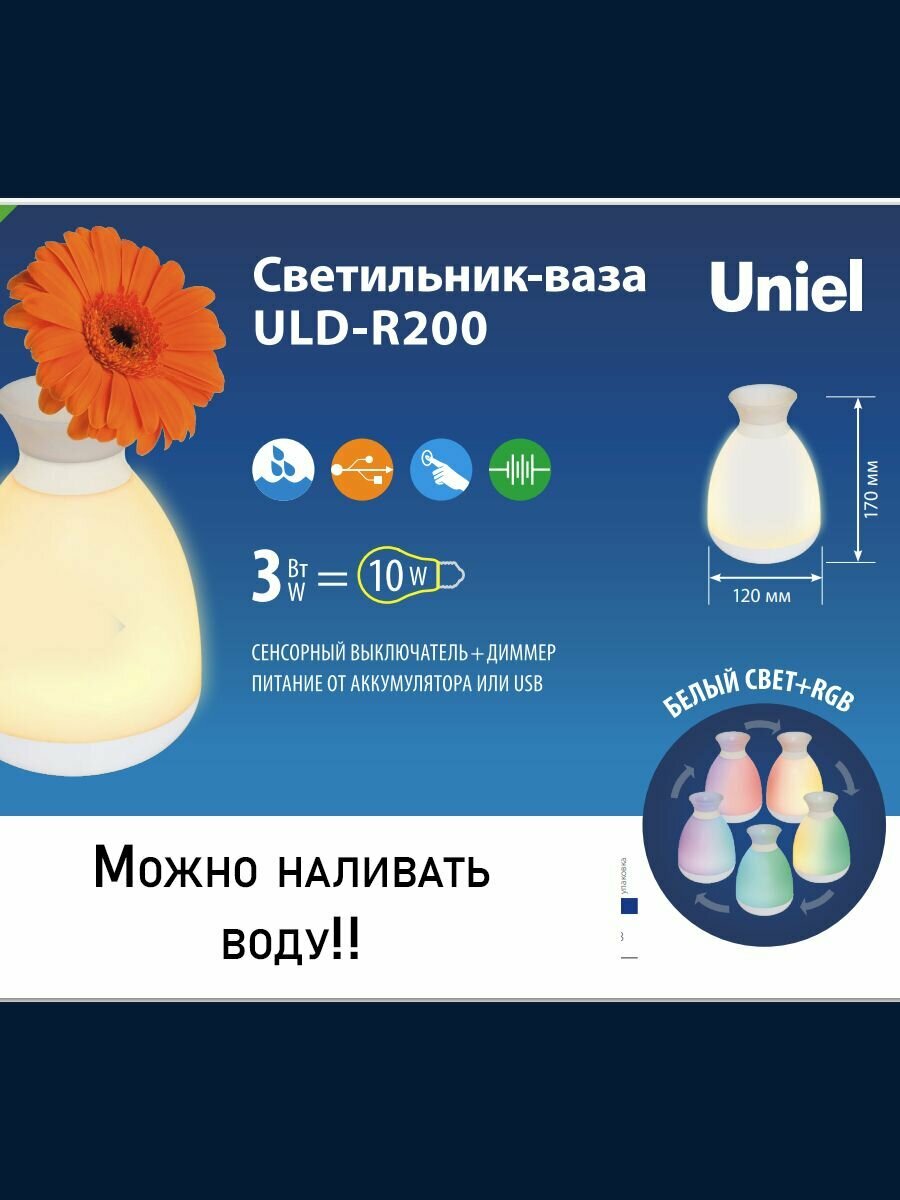 Ночник-ваза отличается своим элегантным и утонченным дизайном. Такой ночник украсит любой интерьер, а также станет хорошим и полезным подарком. Ночник идет со встроенным аккумулятором 1800 mAh, управление сенсорное. Свечение теплое плюс RGB. Питание от аккумулятора или USB (USB кабель в комплекте). В ночник можно наливать воду.