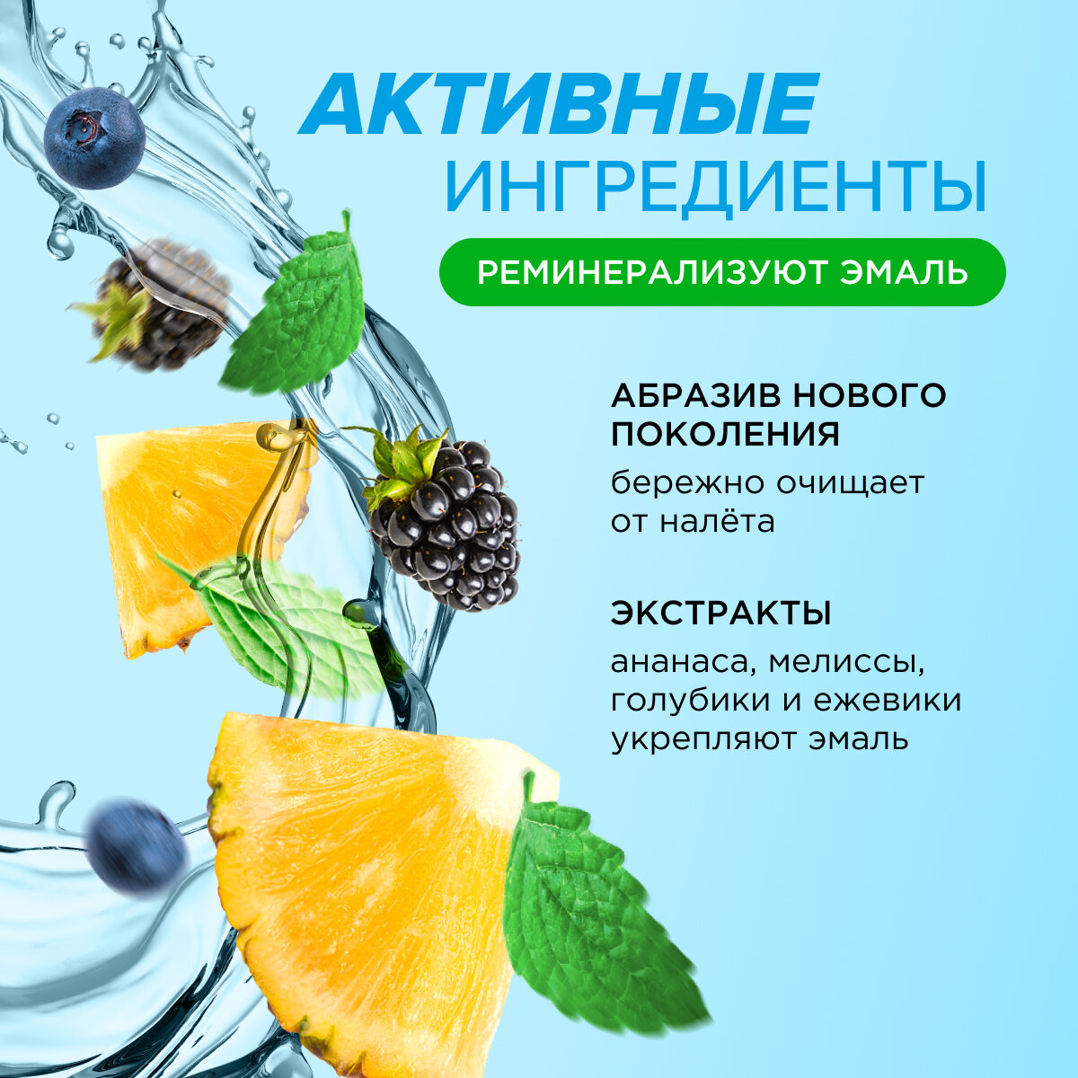 Dicalcium Phosphate Dihydrate, Sorbitol, Aqua, Xylitol, Silica, Cellulose Gum, Hydroxyapatite, Сocamidopropyl Betaine, Ananas Sativus Fruit Extract, Melissa Оfficinalis Еxtract, Vaccinium Uliginosum Berry Extract, Rubus Fruticosus Fruit Extract, Papain, Stevioside, Aroma, Sodium Benzoate, Рotassium Sorbate.Инструкция