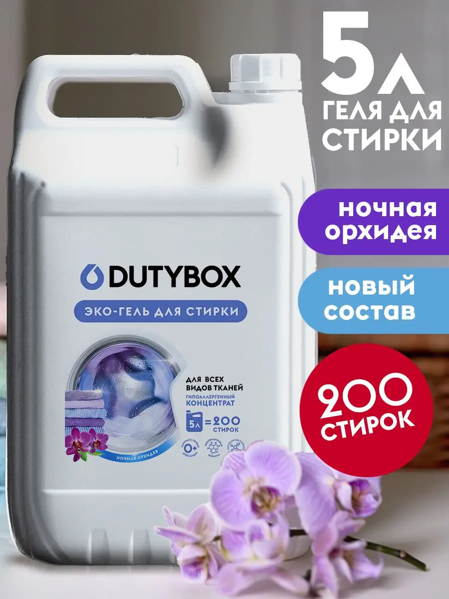 Сервис сравнения цен СкидкаГИД предлагает сравнить цены на товар «Гель для стирки Концентрат "Ночная орхидея" (200 стирок) 5 л Dutybox db-5142»