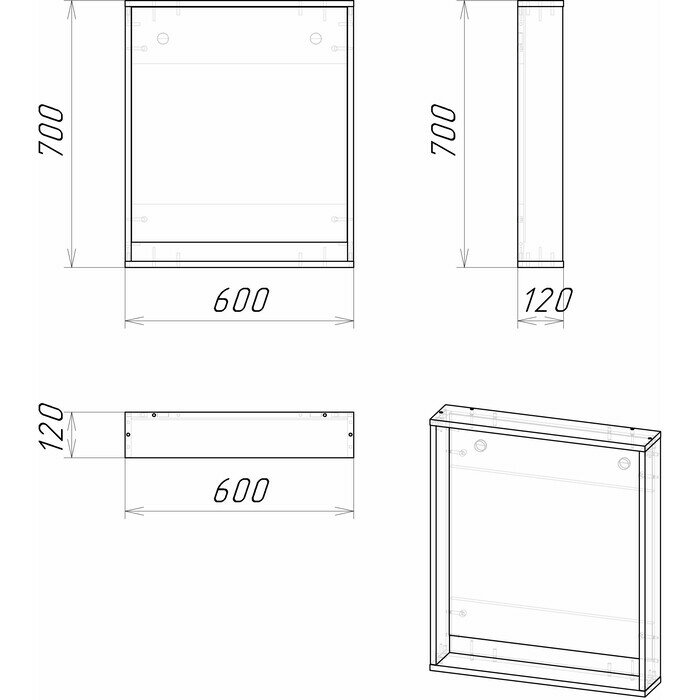 - Габариты (ШxВxГ): 600x700x120 мм.
