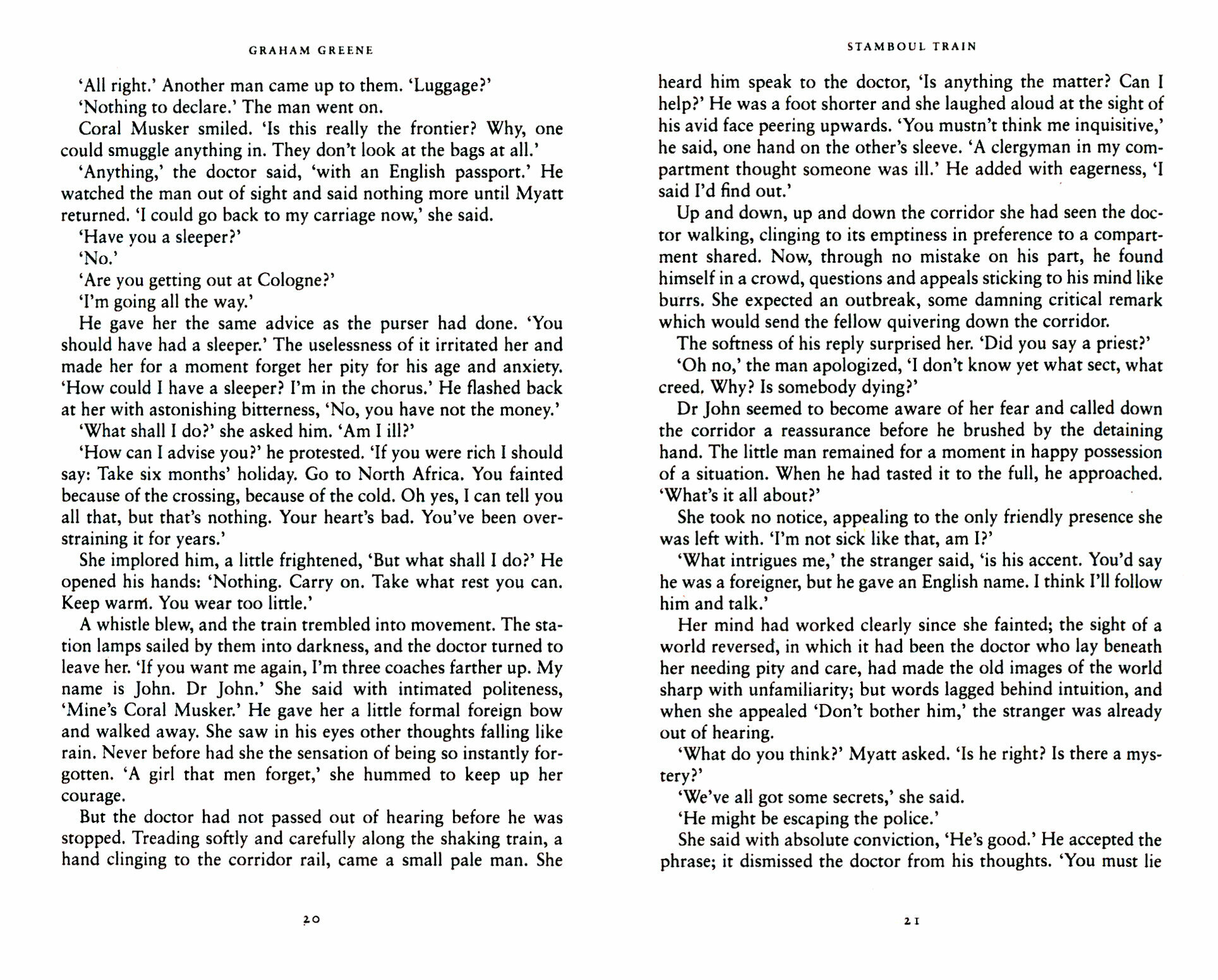 A classic espionage thriller from master storyteller Graham Greene Carleton Myatt meets Coral Musker, a naive English chorus girl, aboard the Orient Express as it heads across Europe to Constantinople. As their relationship develops, they find themselves caught up in the fates of the other passengers and drawn into a web of espionage, murder and lies. WITH AN INTRODUCTION BY CHRISTOPHER HITCHENS