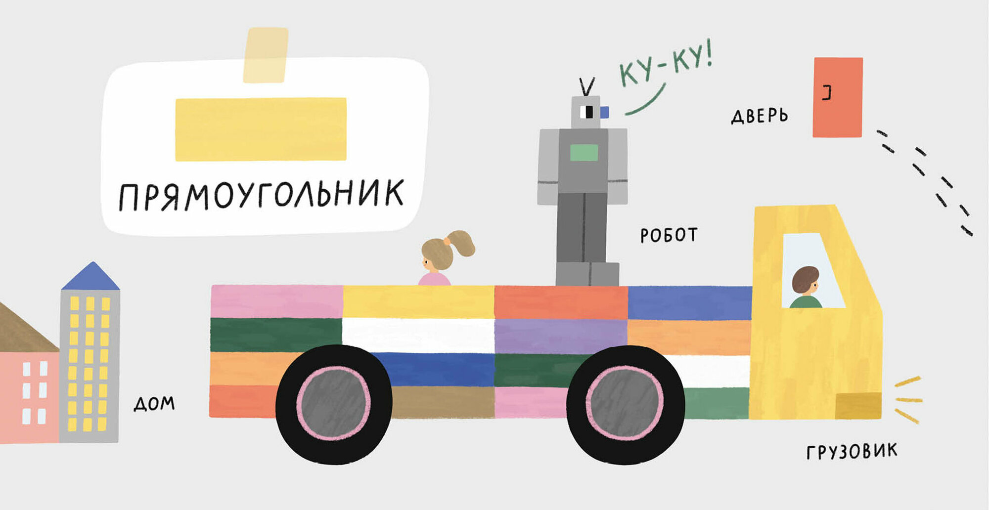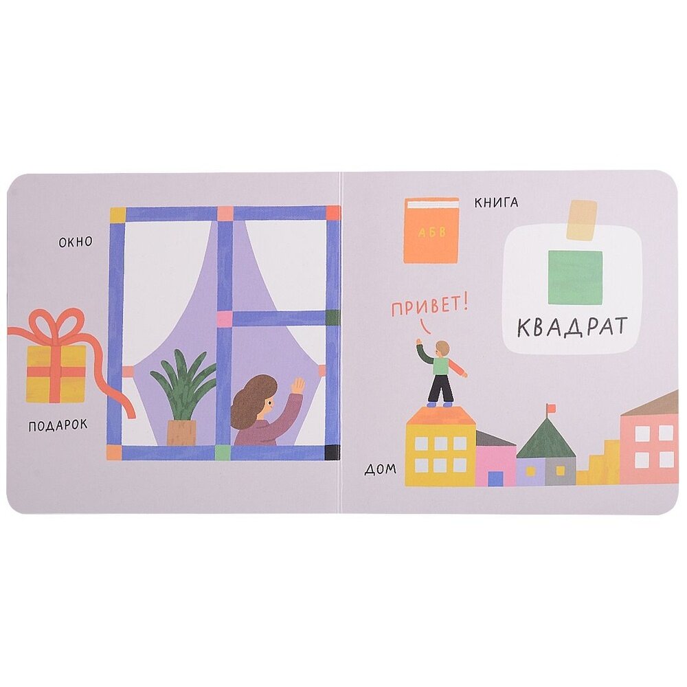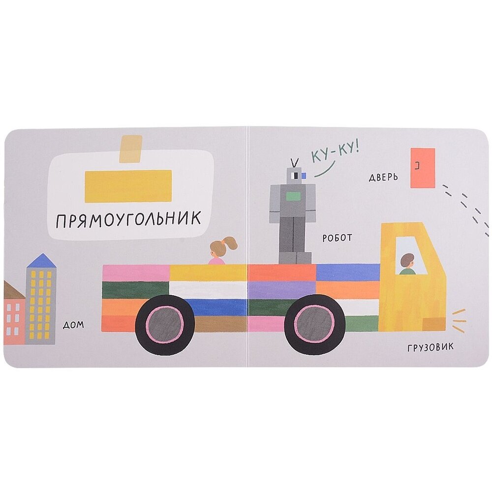 Книжка-картонка для самых маленьких поможет начать знакомство ребёнка с миром книг в игровой форме. Каждый разворот посвящен отдельной геометрической фигуре, которую можно найти вокруг нас в городе, а на последнем развороте можно проверить свои знания и найти все формы, собранные в одном месте.