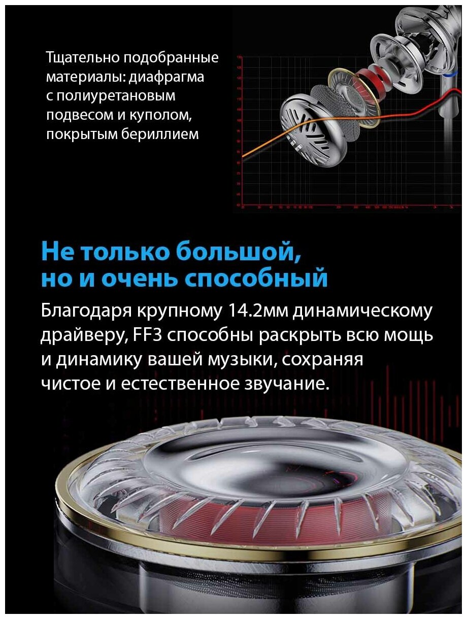 | Вместо классических насадок в FF3 используются Sponge Covers и отличаются не размерами, а характером звучания | есть вариант с усилением басов, сбалансированный и дающий прозрачный звук с акцентом на высокие частоты. |