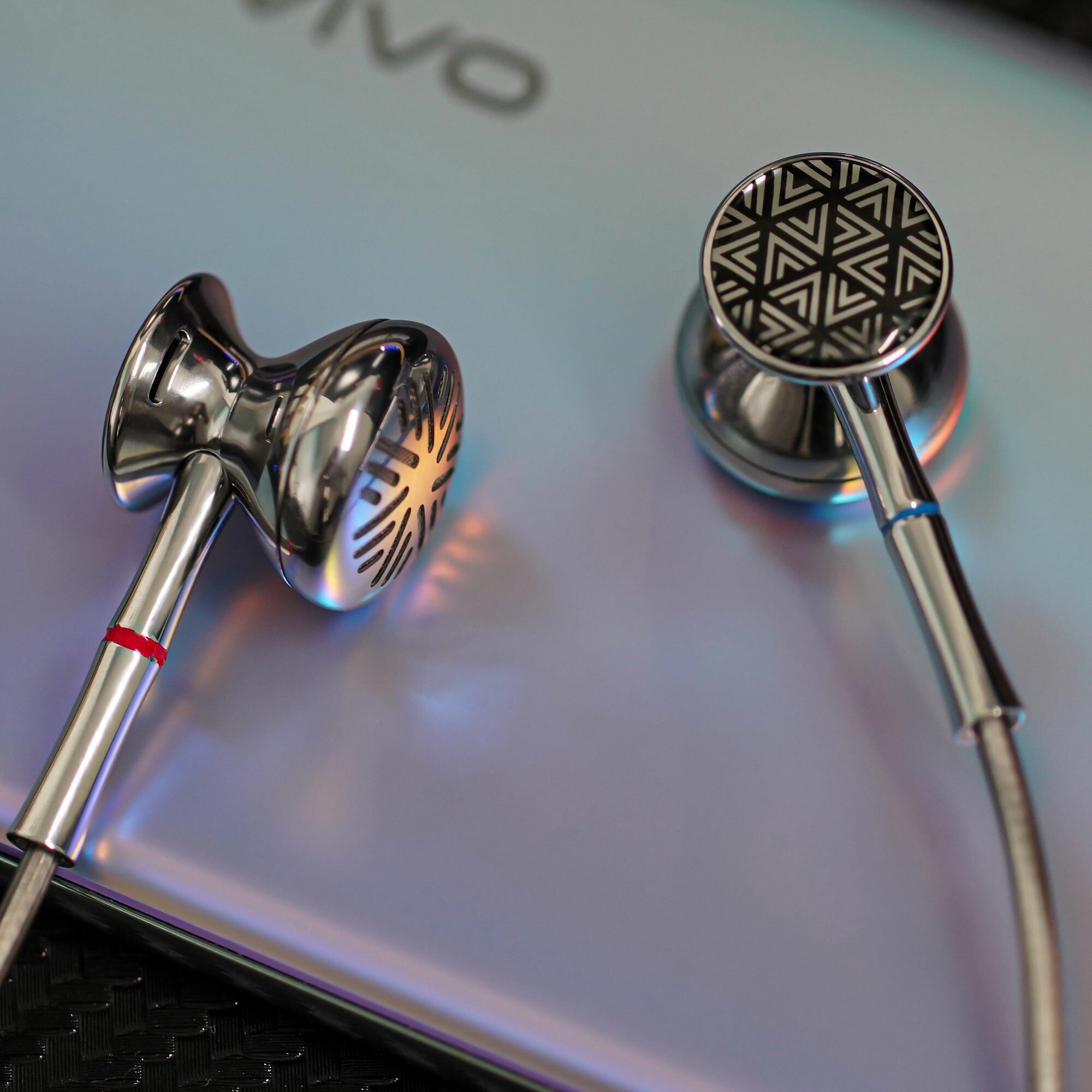 Наушники-вкладыши высокого класса. Полированные корпуса из стали с покрытием стеклом. Динамический излучатель диаметром 14,2 мм с диафрагмой, покрытой бериллием. Кабель с проводником из монокристаллической меди с серебряным покрытием. Возможность балансного и небалансного подключений (переходник в комплекте). Импеданс 45 Ом. Чувствительность 105 дБ. Вес 31 грамм.