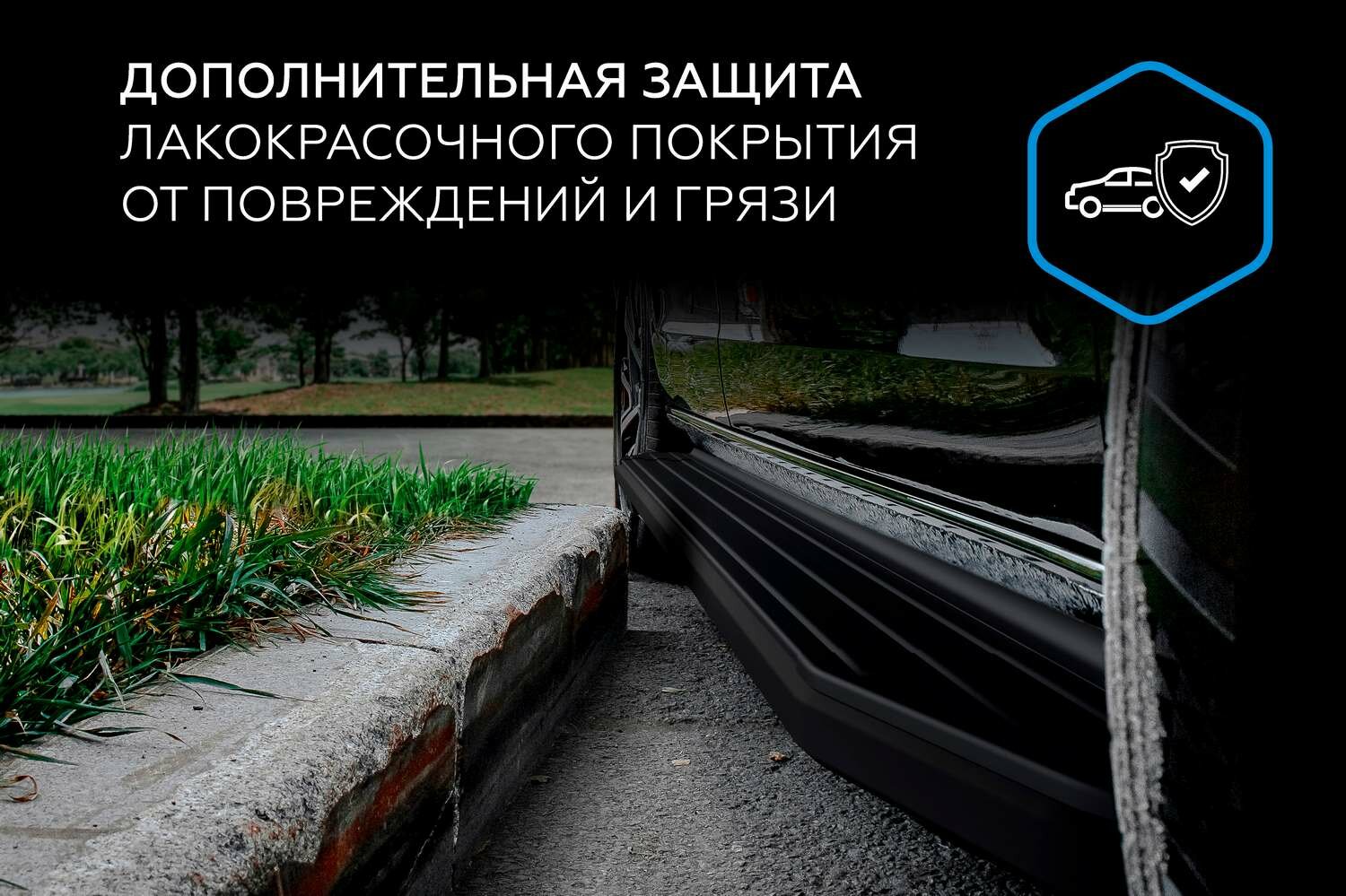 Надежные пороги Rival обеспечивают удобство посадки в автомобиль водителю и пассажирам(в особенности детям), дополняют экстерьер автомобиля, придавая ему стильность и индивидуальность. Основное преимущество порогов Rival - наличие силовых кронштейнов, которые позволяют порогу выдерживать динамическую нагрузку до 300 кг, без повреждений конструкции.