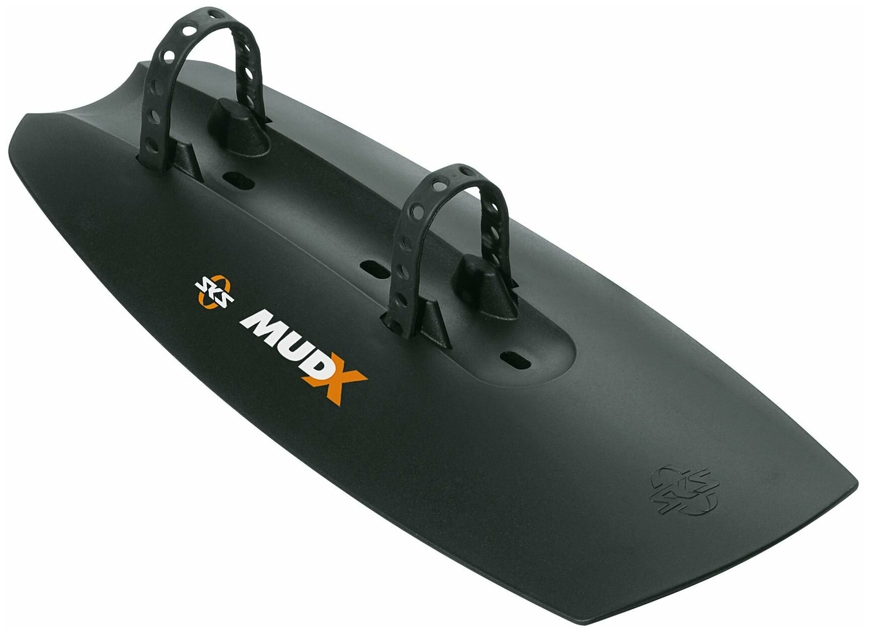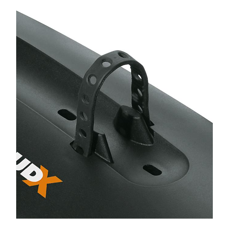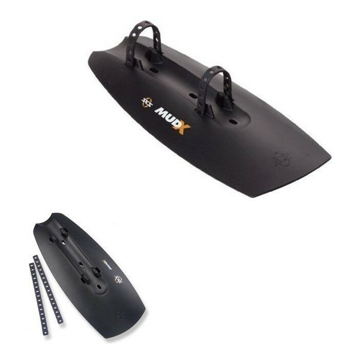 SKS Mud-X - это специальный щиток, который крепится под нижнюю трубу рамы велосипеда и защищает от летящих из под колёс комьев грязи. Выполнен из прочного пластика и весит всего 90 грамм. Крепится к раме при помощи 2 резиновых ремешков. В комплект также входит резиновая накладка на раму, чтобы щиток не сползал и не царапал лакокрасочное покрытие. Подходит для велосипедов с колесами 24-29ʺ.