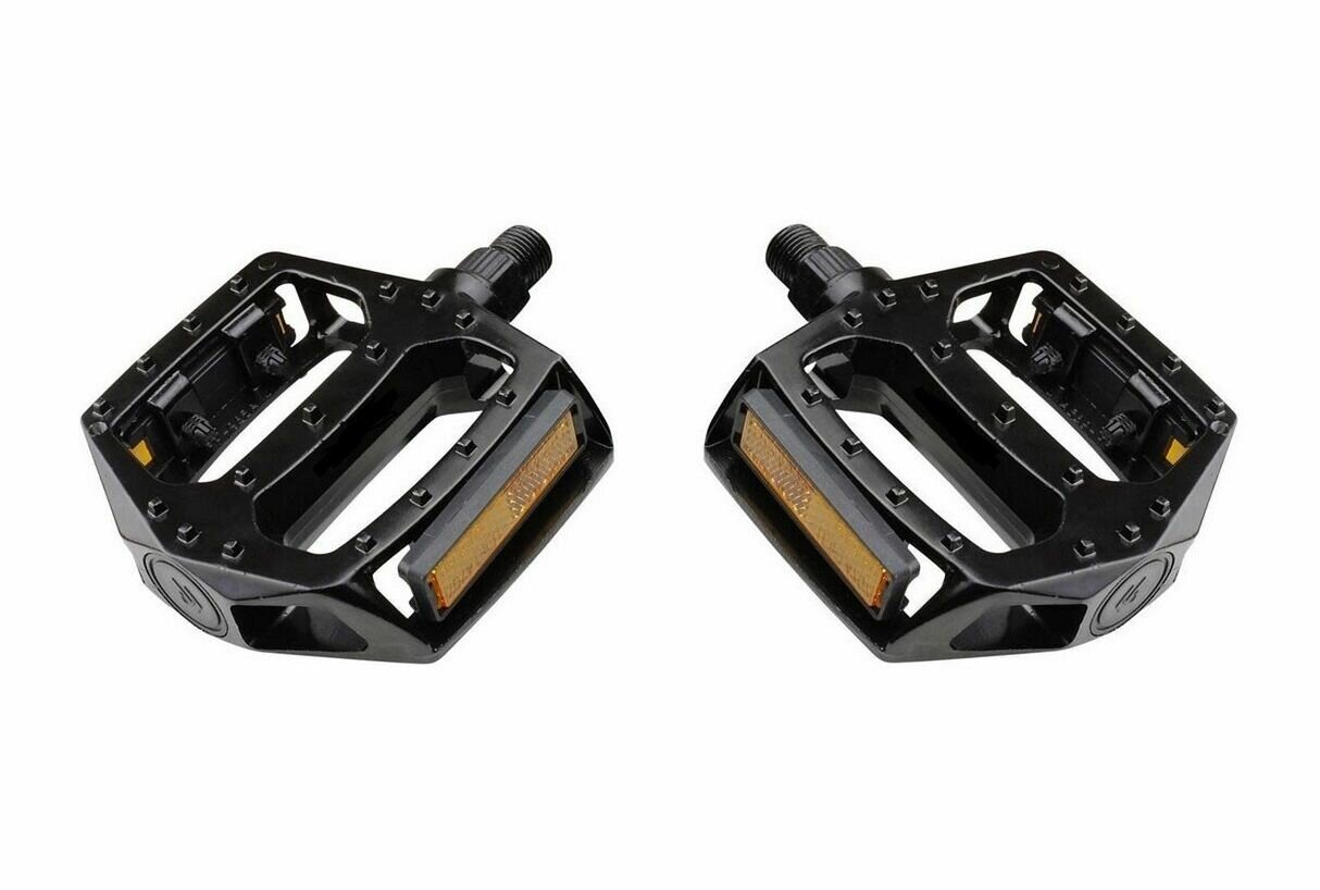 Педали SAIGUAN - пластиковая модель-платформа, предназначенная для прогулочных, дорожных и городских велосипедов. Миниатюрные шипы улучшают сцепление. Светоотражающие элементы на боковых сторонах обеспечивают дополнительную видимость и безопасность на дороге.