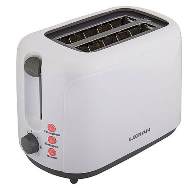 Автоматический тостер Leran белого цвета мощностью 750 Вт позволяет приготовить два тоста одновременно.