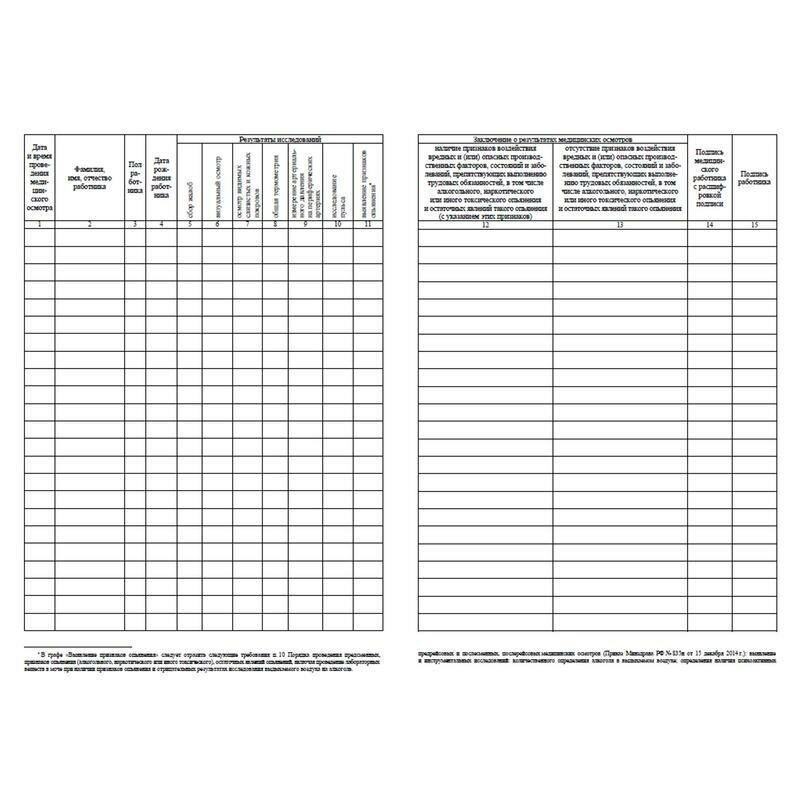 Форма журнала соответствует приказу Министерства здравоохранения Российской Федерации «Об утверждении порядка проведения предсменных, предрейсовых и послесменных, послерейсовых медицинских осмотров» от 15 декабря 2014 г. № 835н.