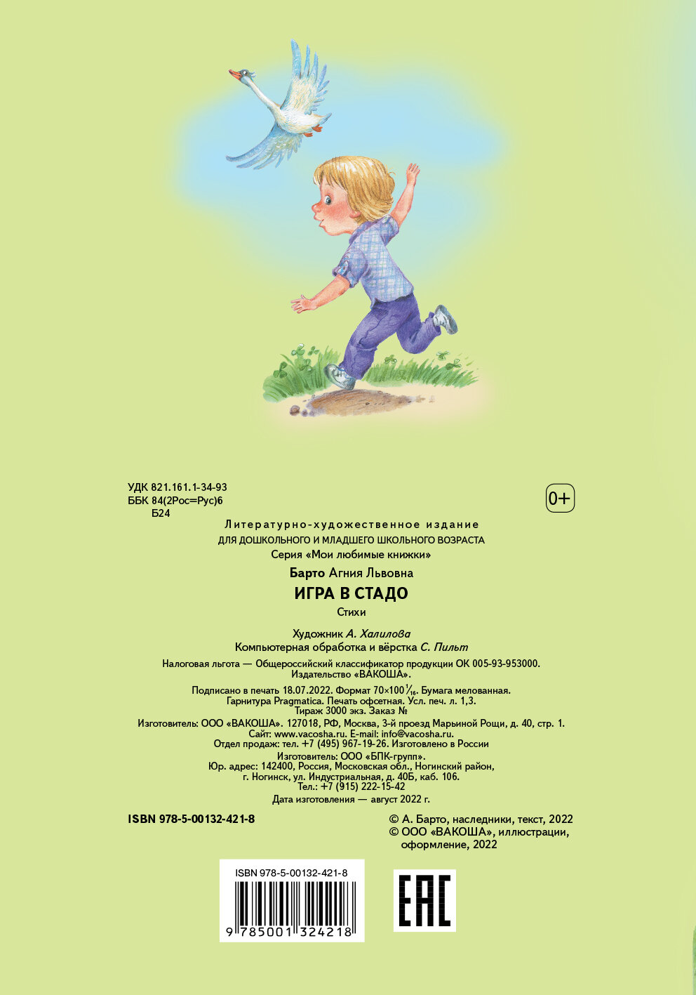 Книга: Игра в стадо. Стихи (Барто Агния Львовна); Вакоша, 2022