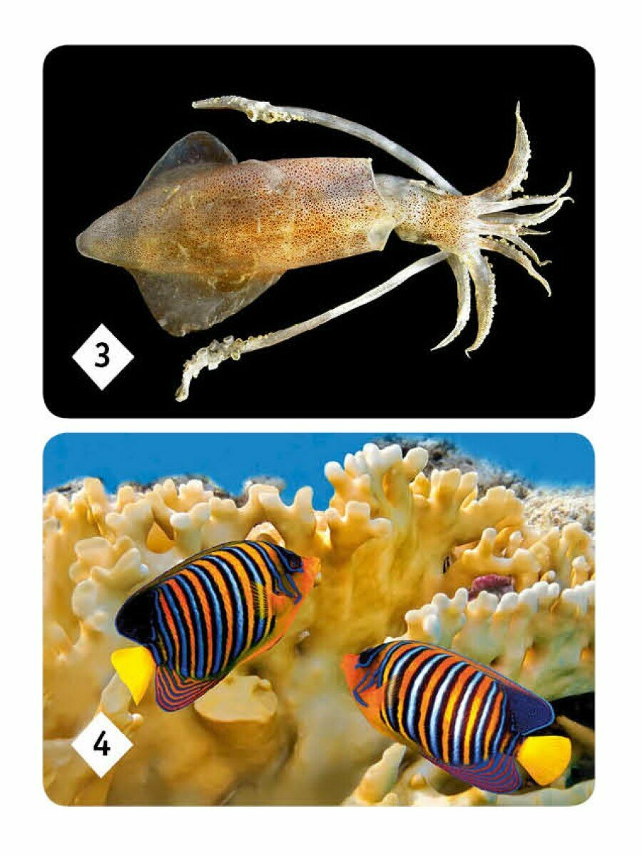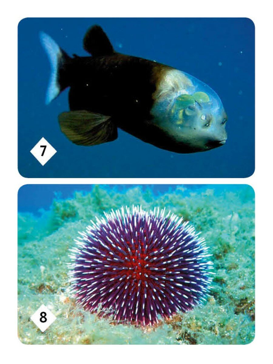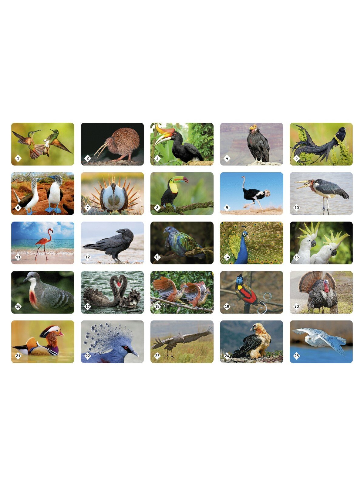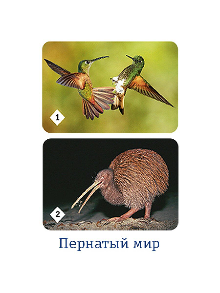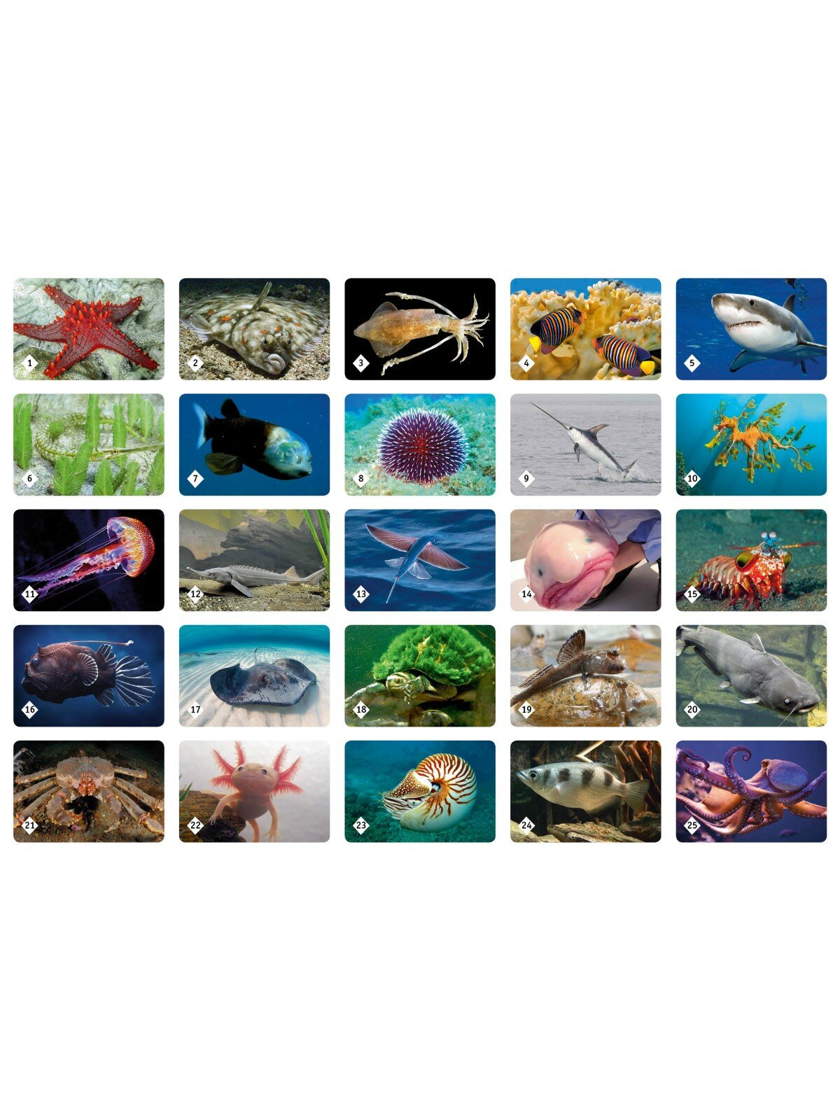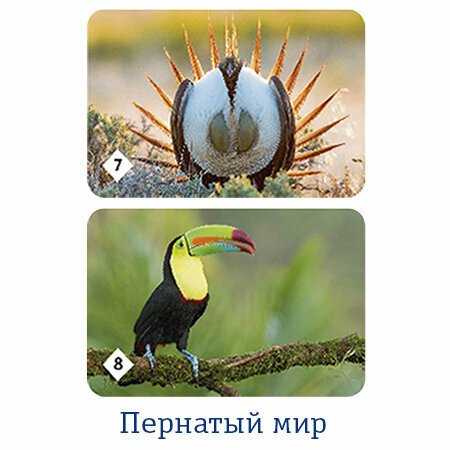 В 2-х буклетах вы найдете как описание всех животных, которые изображены на карточках, так и интересные факты о них. Вы узнаете какая птица самая маленькая, кто умнее - Белая сова, Чёрный ворон или Розовый фламинго. Познакомитесь с огромным разнообразием рыб. Морские ежи, звезды и кораллы встретятся вам на пути.
