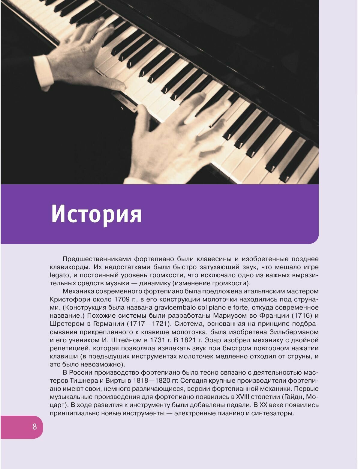 Далее: непонятно мне, как преподавателю: для чего слово синтезатор указано на обложке? О нём ни слова внутри. И нотные примеры для фортепианной клавиатуры. Да, на синтезаторе сыграть в режиме ф-но примеры можно, но это понятие подразумевает и отличные от классического пианино функции и нотные переложения. А так, скорее, это выглядит просто заманухой для охвата бОльшей аудитории.