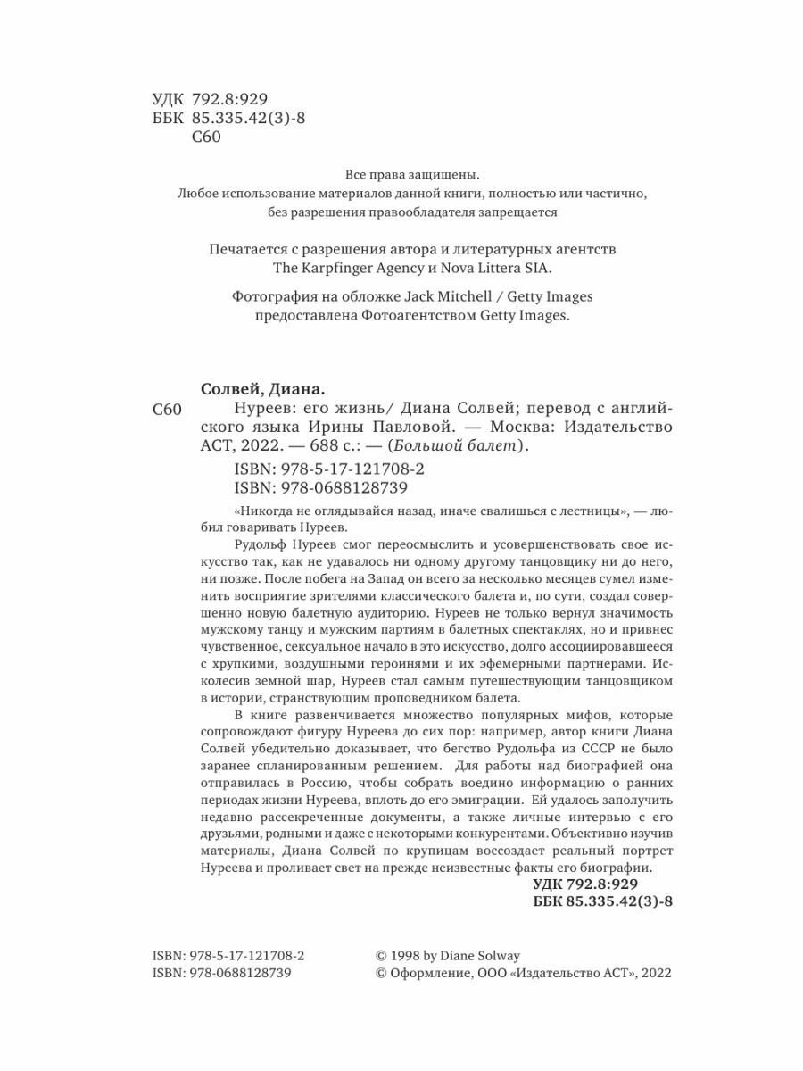 Книга: Нуреев: его жизнь (Диана Солвей); АСТ, ОГИЗ, 2022