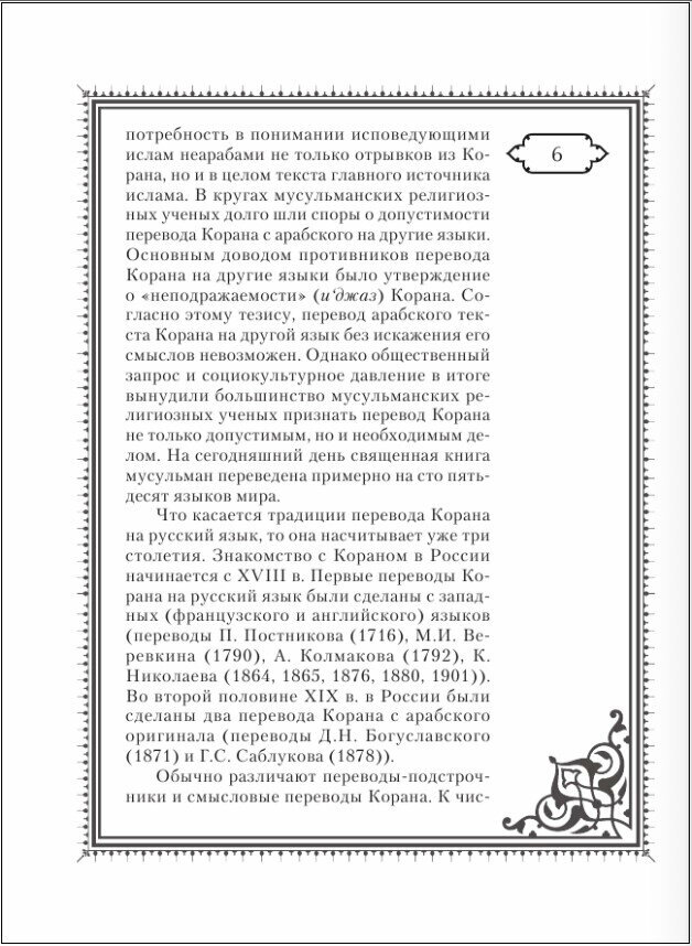 Книга хорошего качества. Стоит отметить, что кроме самого перевода, тут присутствует «рамочка» с оригинальным арабским текстом, но буквы в ней настолько мелкие, что будет сложно их читать(если вы вообще будете читать на арабском, лучше сразу купите оригинал), но тем не менее возможно. Есть ленточка- закладка. В начале книги также есть предисловие. Книга размером с ладонь. Обложка твёрдая. Но я заметил на некоторых страницах следы чернил в самом их верху. Это не критично, но всё же дефект. Сам же перевод неплохой, как мне кажется. В целом, советую к покупке.