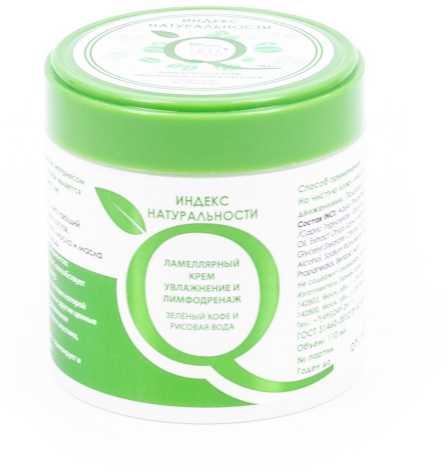 Индекс Натуральности Дневной ламеллярный крем для лица "Увлажнение и лимфодренаж" с зеленым кофе и рисовой водой 110 мл (Индекс Натуральности ) (ЭХ99989431709)