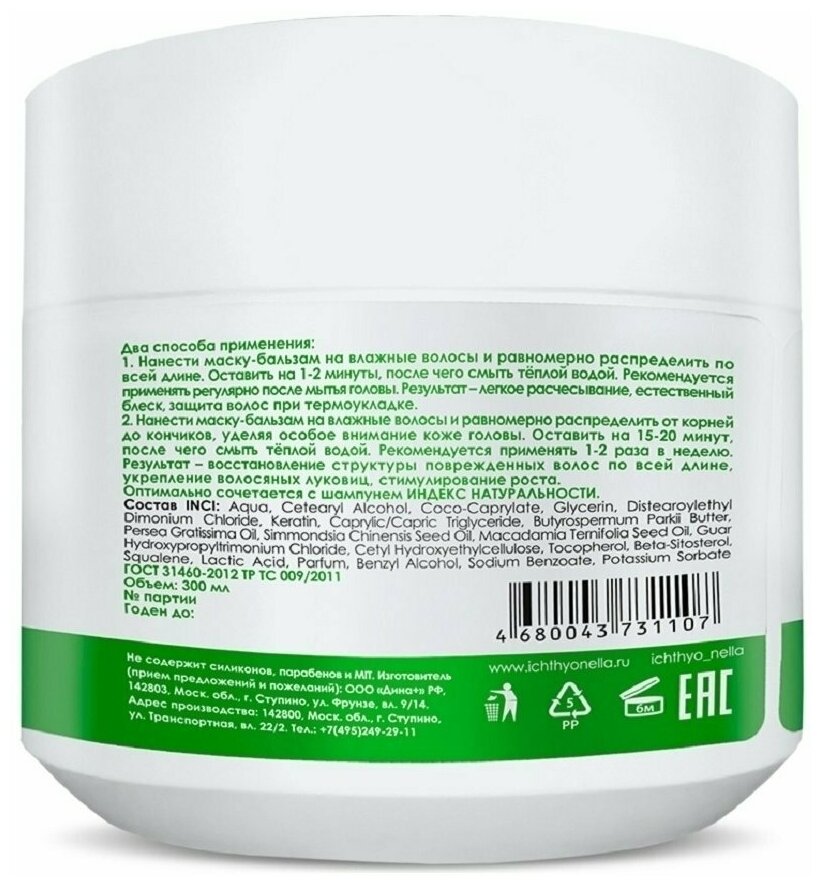 Индекс Натуральности Маска-бальзам для волос 2-в-1 с биомиметическим кератином 300 мл (Индекс Натуральности ) (ЭХ99989431710)