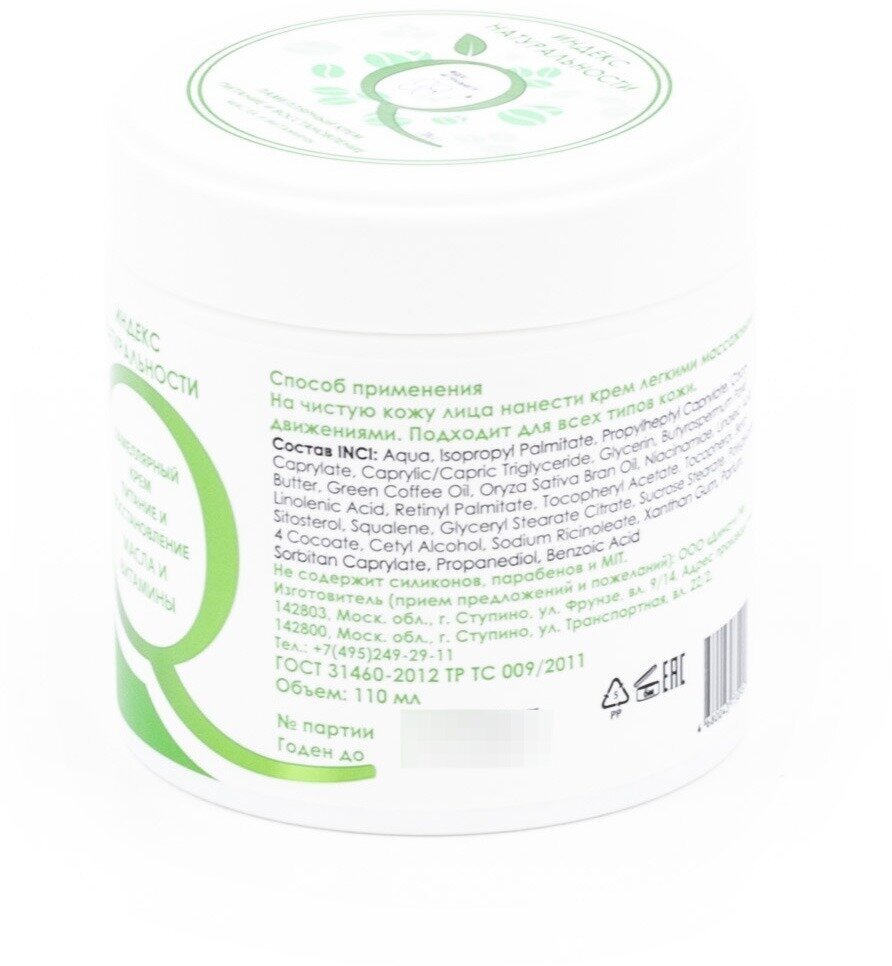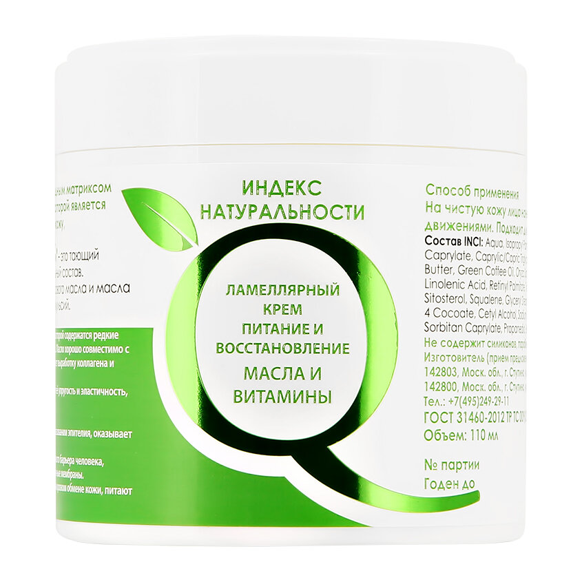 Индекс Натуральности Ночной ламеллярный крем для лица "Питание и восстановление. Масла и витамины" 110 мл (Индекс Натуральности ) (ЭХ99989431708)