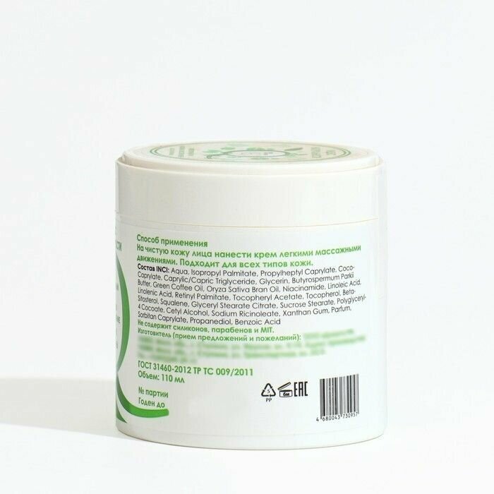 | Состав | Aqua, Isopropyl Palmitate, Propylheptyl Caprylate, Coco-Caprylate, Caprylic/Capric Triglyceride, Glycerin, Butyrospermum Parkii Butter, Green Coffee Oil, Oryza Sativa Bran Oil, Niacinamide, Linoleic Acid, Linolenic Acid, Retinyl Palmitate, Tocopheryl Acetate, Tocopherol, Beta-Sitosterol, Squalene, Glyceryl Stearate Citrate, Sucrose Stearate, Polyglyceryl-4 Cocoate, Cetyl Alcohol, Sodium Ricinoleate, Xanthan Gum, Parfum, Sorbitan Caprylate, Propanediol, Benzoic Acid |