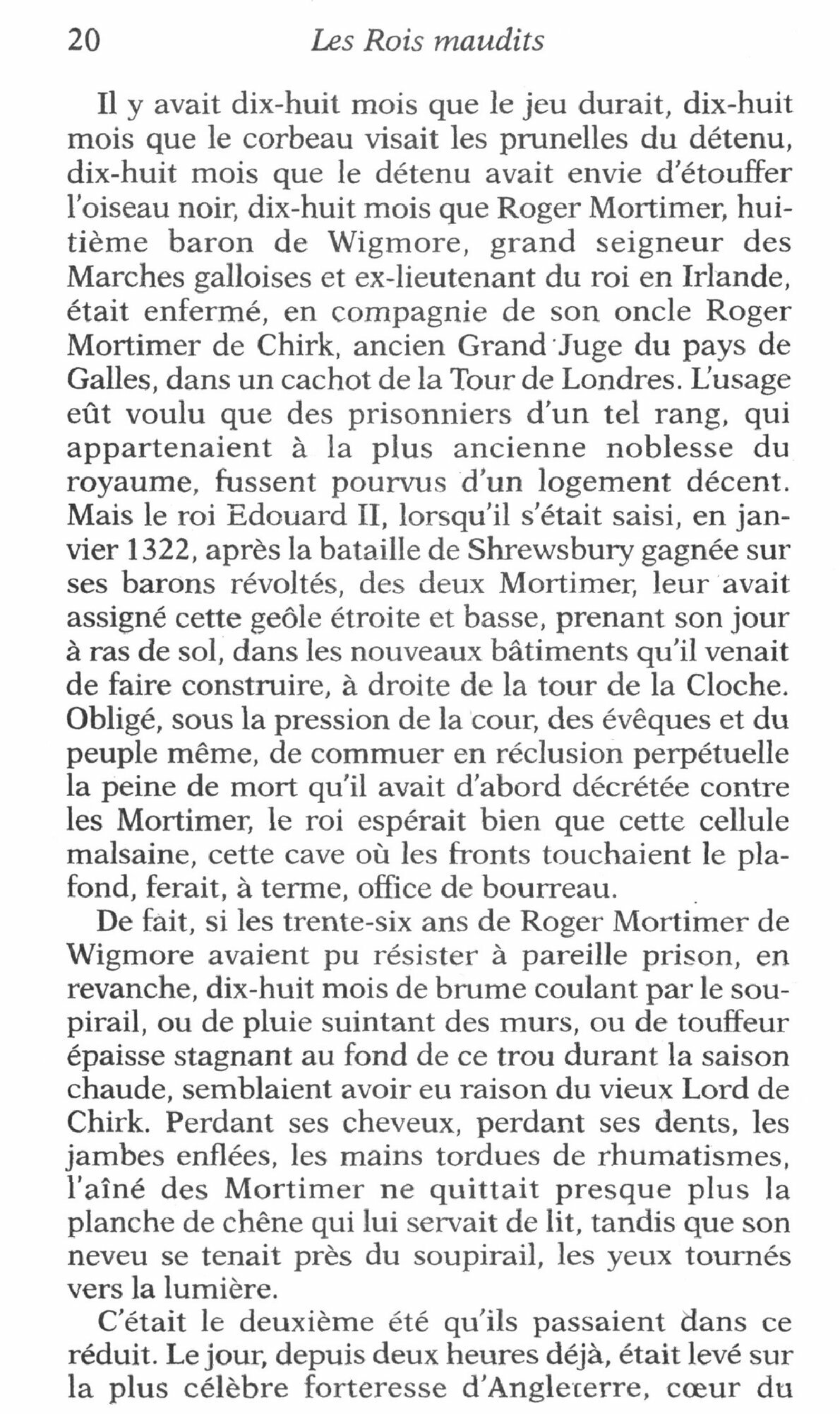 Philippe V le Long vient de mourir avant d'avoir atteint trente ans et, comme son frere Louis X le Hutin, sans descendance male. Le troisieme fils du Roi de fer, le faible Charles IV le Bel, succede a Philippe V. Une evasion de la tour de Londres ;