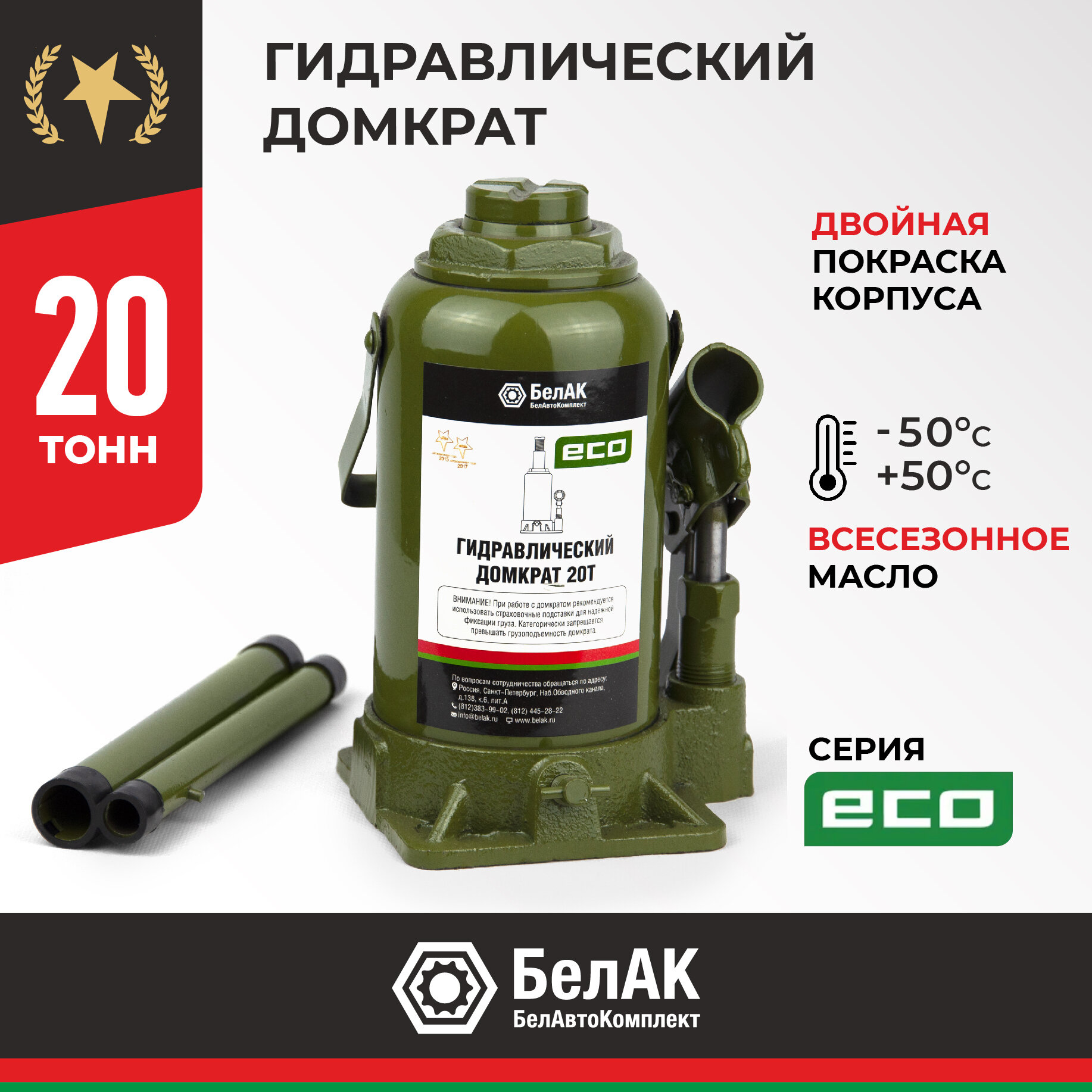 Домкрат гидравлический 20т 210мм-400мм ECO БелАК (БЕЛАВТОКОМПЛЕКТ) БАК.70021