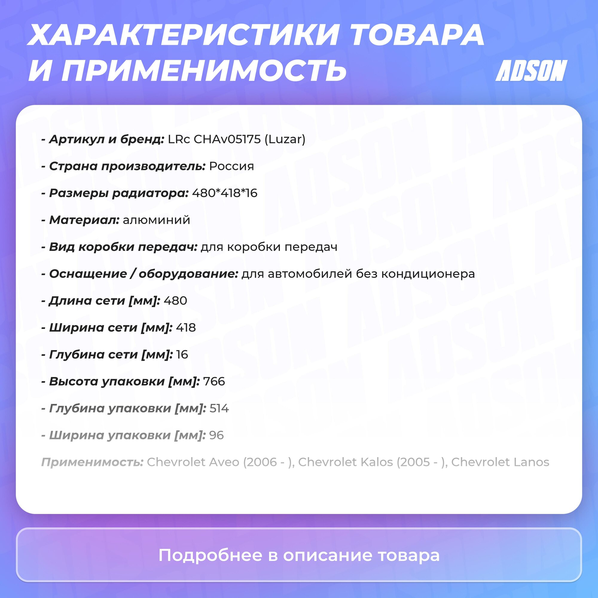 Радиатор охлаждения для автомобилей Aveo (05-) MT LUZAR (LRc CHAv05175)
