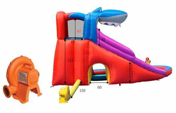 Надувная водная горка "Акула" 9417 это - прыжки, катание с горки, веселый смех и отличное настроение обеспечены детям на надувных аттракционах. А летом самые веселые развлечения, особенно в жаркую погоду, это игры с водой. Надувная водная горка "Акула" 9417 это яркая конструкция, которая состоит из высокого спуска с водяными брызгами и неглубокого бассейна. Для такого комплекса потребуется участок размером четыре на три метра, а также возможность подключения воды.