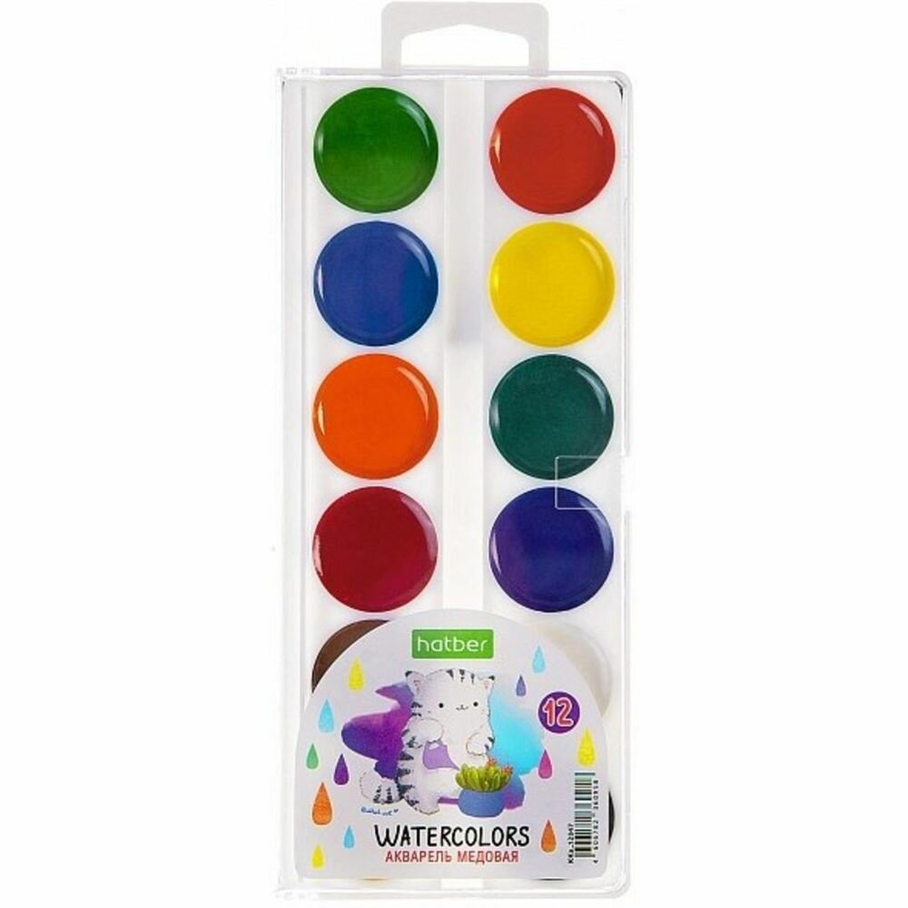 Акварель медовая Eco. Приключения кота Пирожка 12 цветов без кисти Хатбер