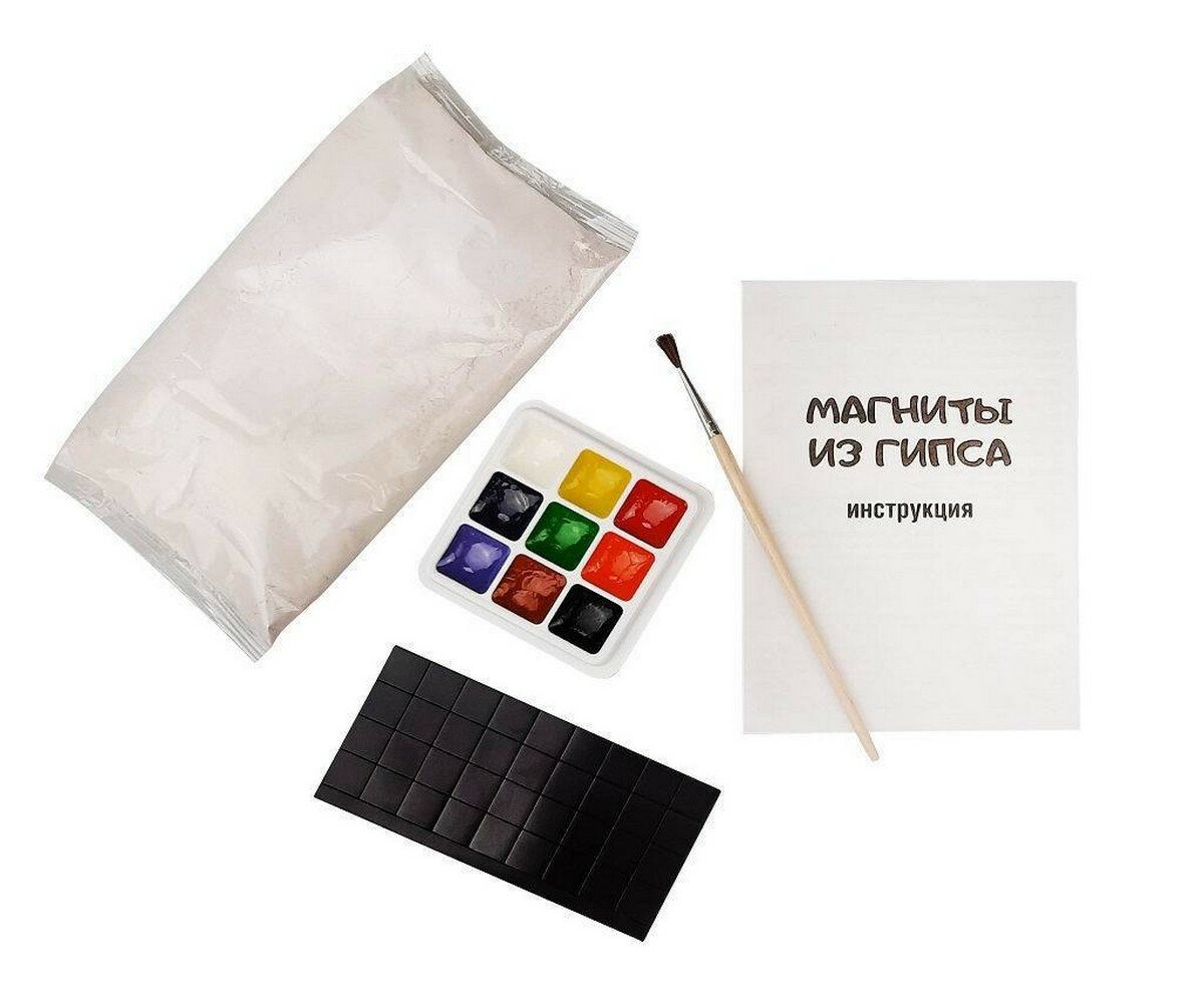 Помогите ребёнку развести и залить раствор в формочки, следуя пошаговой инструкции. Ребёнок с большим удовольствием примет участие в изготовлении магнитов и с интересом раскрасит готовые фигурки.