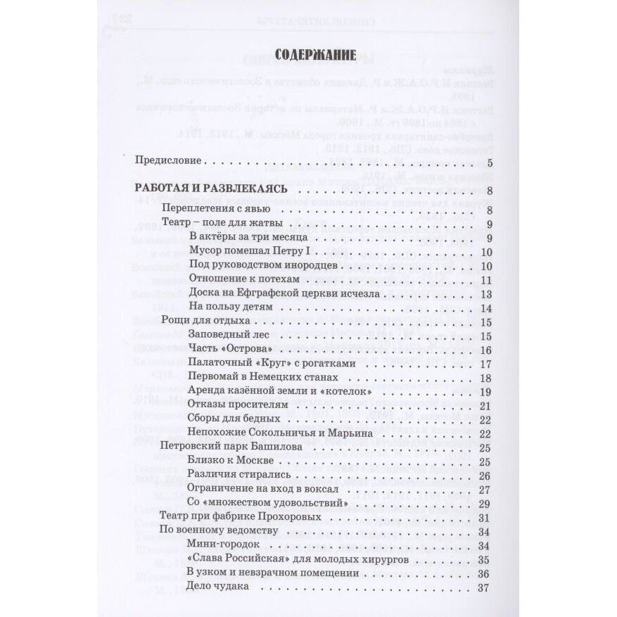 В книге описаны яркие сюжеты, связанные с буднями и отдыхом прежних москвичей, - истории о театральных спектаклях в Москве и пригороде, о постановках, которые могло увидеть простонародье на Ходынском поле 18 мая 1896 года, о вакационных зелёных зонах, о работе музыкальных открытых сцен на площадях Москвы и на её окраине, о ресторанах, хоровом пении, рыболовстве и велопередвижениях, о буднях городской полиции и природных катаклизмах, ставших неожиданными для горожан.