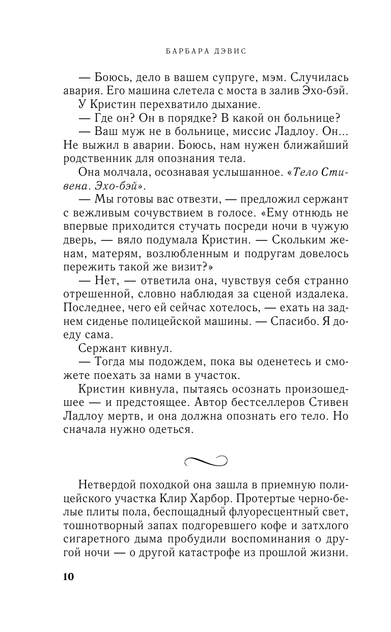 На какое-то время она обрела счастье рядом с супругом Стивеном, популярным писателем. Но когда он попал в автокатастрофу вместе с неизвестной женщиной, что стало в прессе сенсацией, сравнимой с его лучшими романами, Кристин поняла — ее вновь предали.