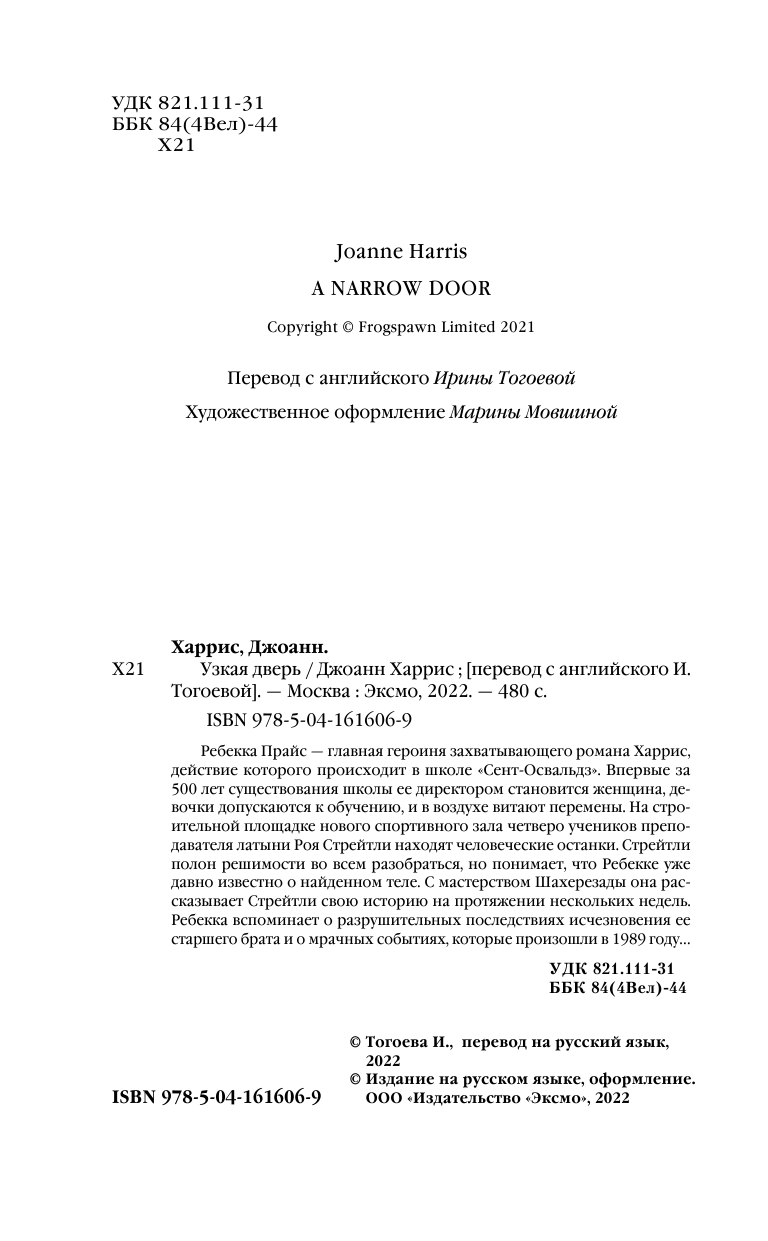 Книга: Узкая дверь (Харрис Джоанн); ООО "Издательство "Эксмо", 2022