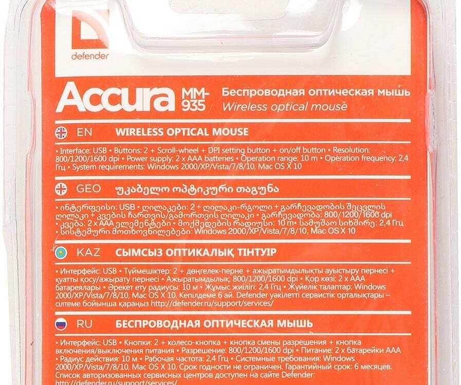 - Беспроводная мышь, $6, Defender Accura MM-966