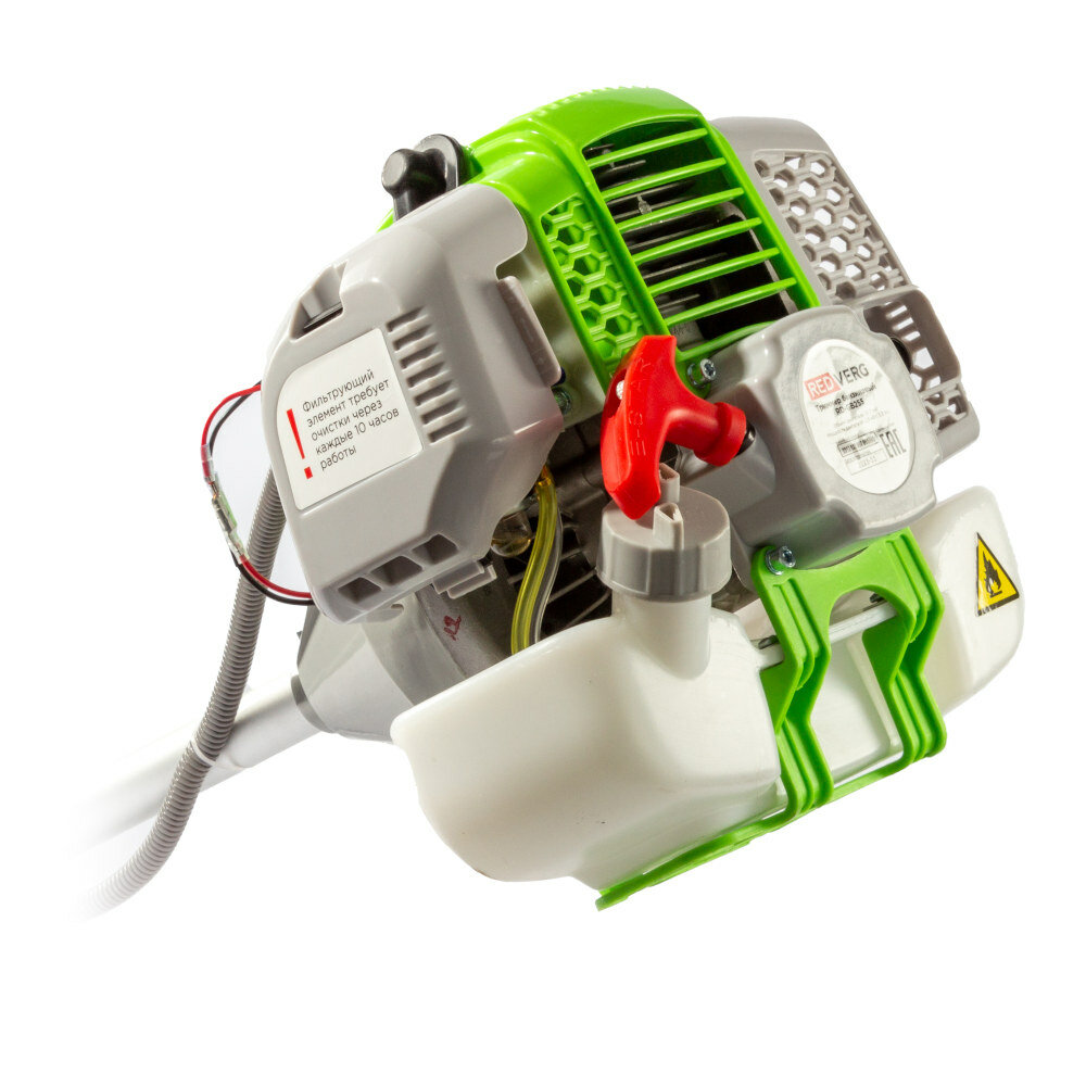 Триммер оборудован двухтактный двигателем с совмещенной системой смазки (работает на топливной смеси бензина с маслом).