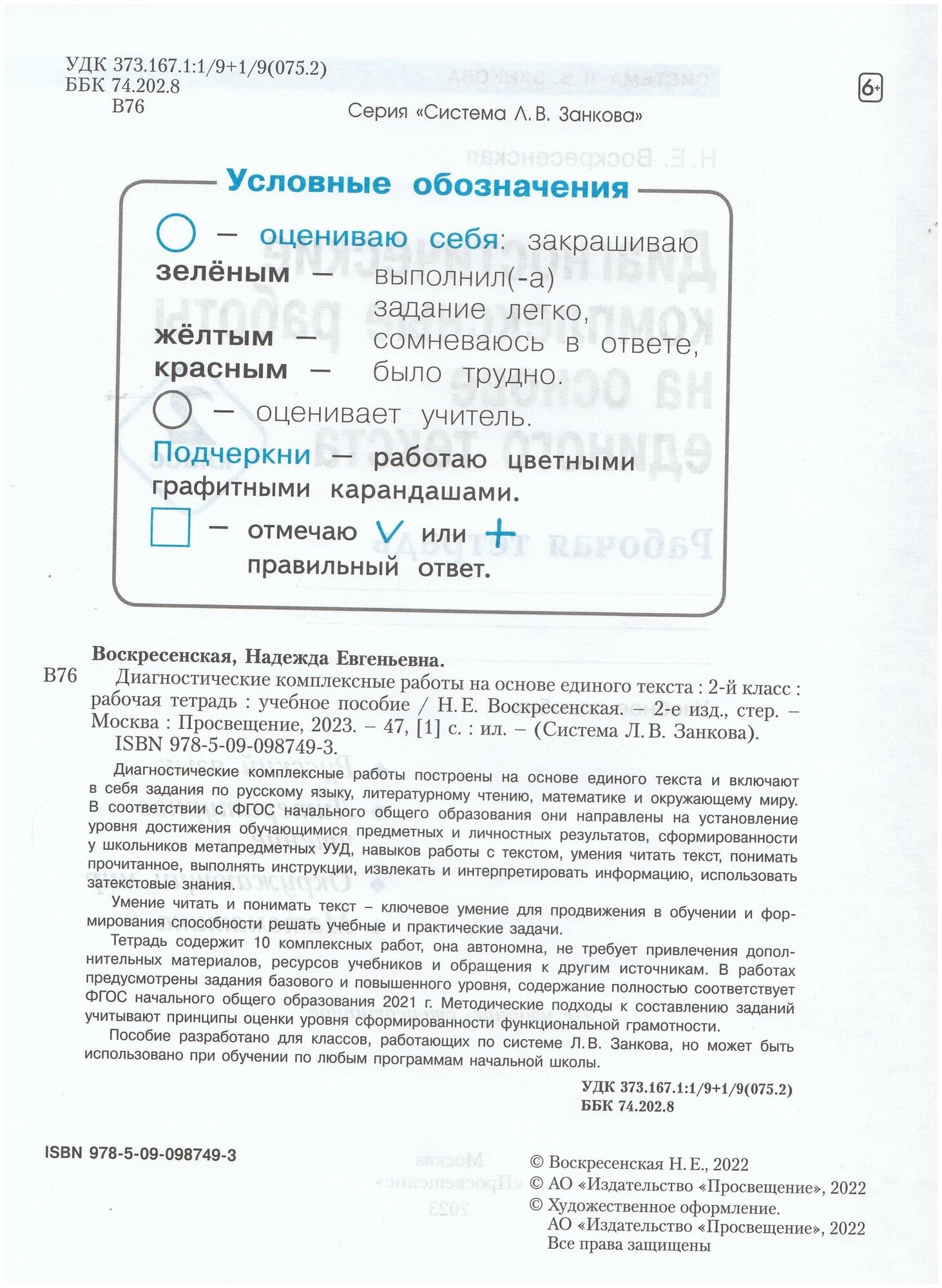 Диагностические комплексные работы на основе единого текста. 2 класс. Рабочая тетрадь (Воскресенская Надежда Евгеньевна); Просвещение-Союз, 2023