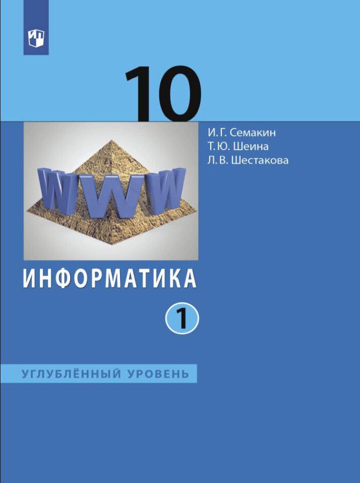 Информатика 10 класс Углубленный уровень Учебник В двух частях Часть 1 (Семакин Игорь Геннадьевич, Шеина Татьяна Юрьевна (соавтор), Шестакова Лидия Валентиновна (соавтор)); Просвещение, 2022
