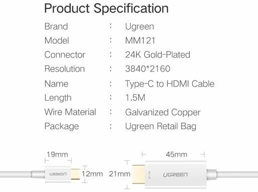 | Разъемы | USB Type-C (m) - HDMI |
